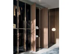Armadio con ante battenti glass in vetro e legno incorniciate da un profilo in alluminio. Struttura interna in materico e telaio in metallo brunito che funge da maniglia utile all’apertura delle ante. Lunghezza 402,5cm, altezza 257,8cm e profondità 62cm. Articolo su ordinazione con finiture di struttura e ante a scelta, la nostra offerta Euro 4.400,00