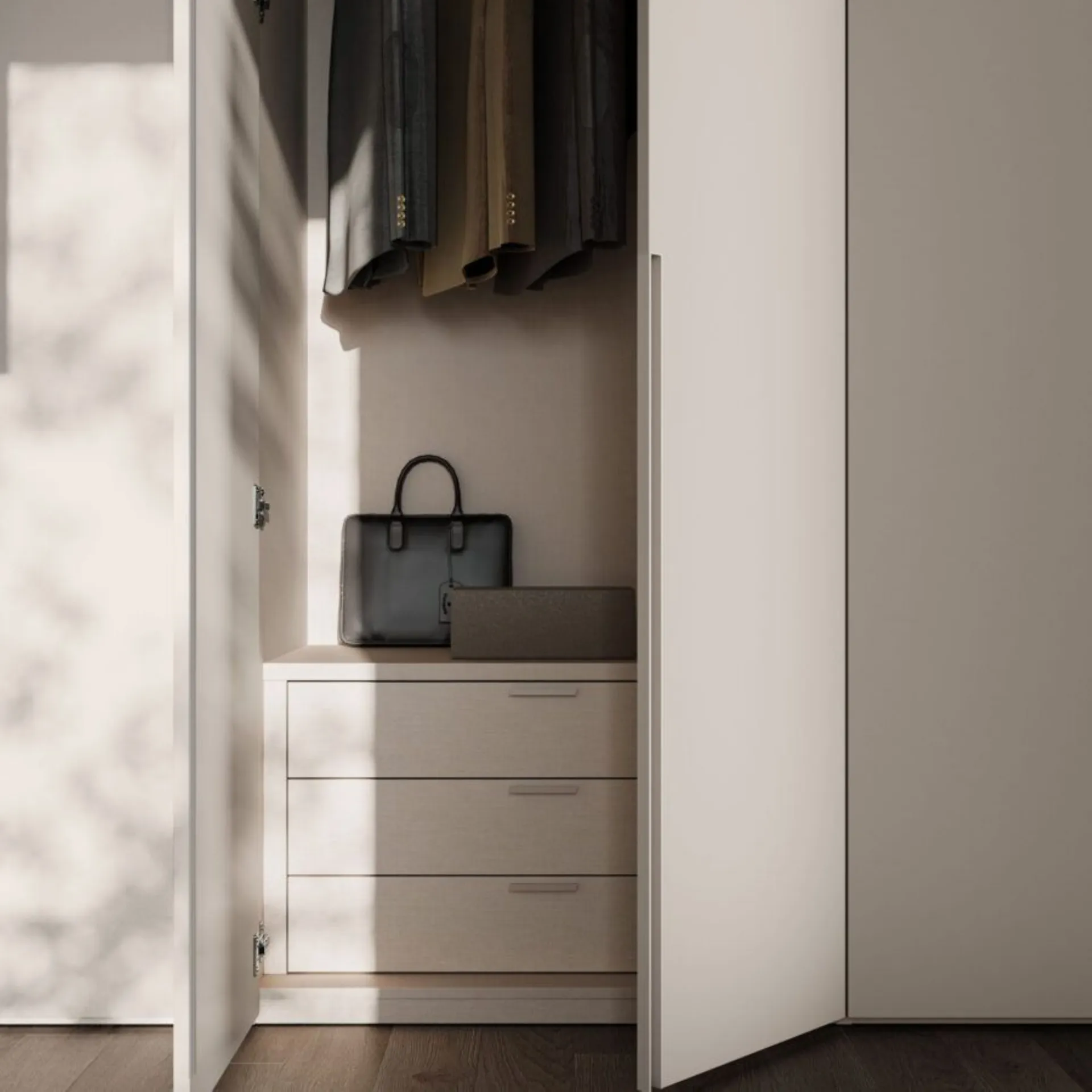 Mottes Mobili propone questo armadio in laminato con ante battenti mod. Modulo ponte libreria e armadio battente Tratto 1200 in Velluto, maniglia dedicata in tinta. Colonna armadio attrezzata con cassettiera e tubo. Armadio ad angolo attrezzato con ripianoe tubi .L'offerta per questo armadio è di euro 4.800,00. compreso Iva e trasporto, montaggio escluso. Tempi di consegna 40 gg. circa. Per maggiori informazioni contattaci via mail o passa a trovarci nel nostro showroom.
