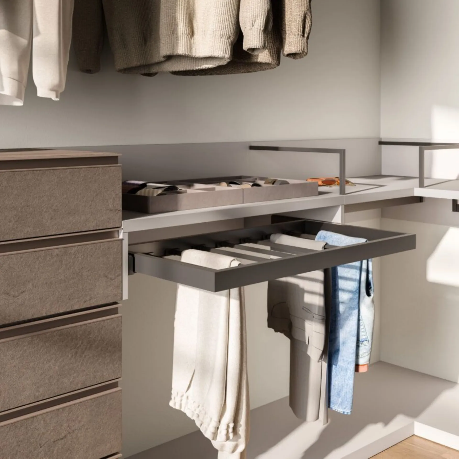 Mottes Mobili propone questa cabina armadio senza porte scorrevoli esterne, mod. Cabina Alea in Velluto e cassettiere Bravo in Dekor Bronzo. Cabina Alea in Velluto con mensole, portapantaloni estraibile, panca e pensile con cassetto. L'offerta per questo cabian è di euro 3.800,00 compreso Iva e trasporto, montaggio escluso. Tempi di consegna 40 gg. circa. Per maggiori informazioni contattaci via mail o passa a trovarci nel nostro showroom.