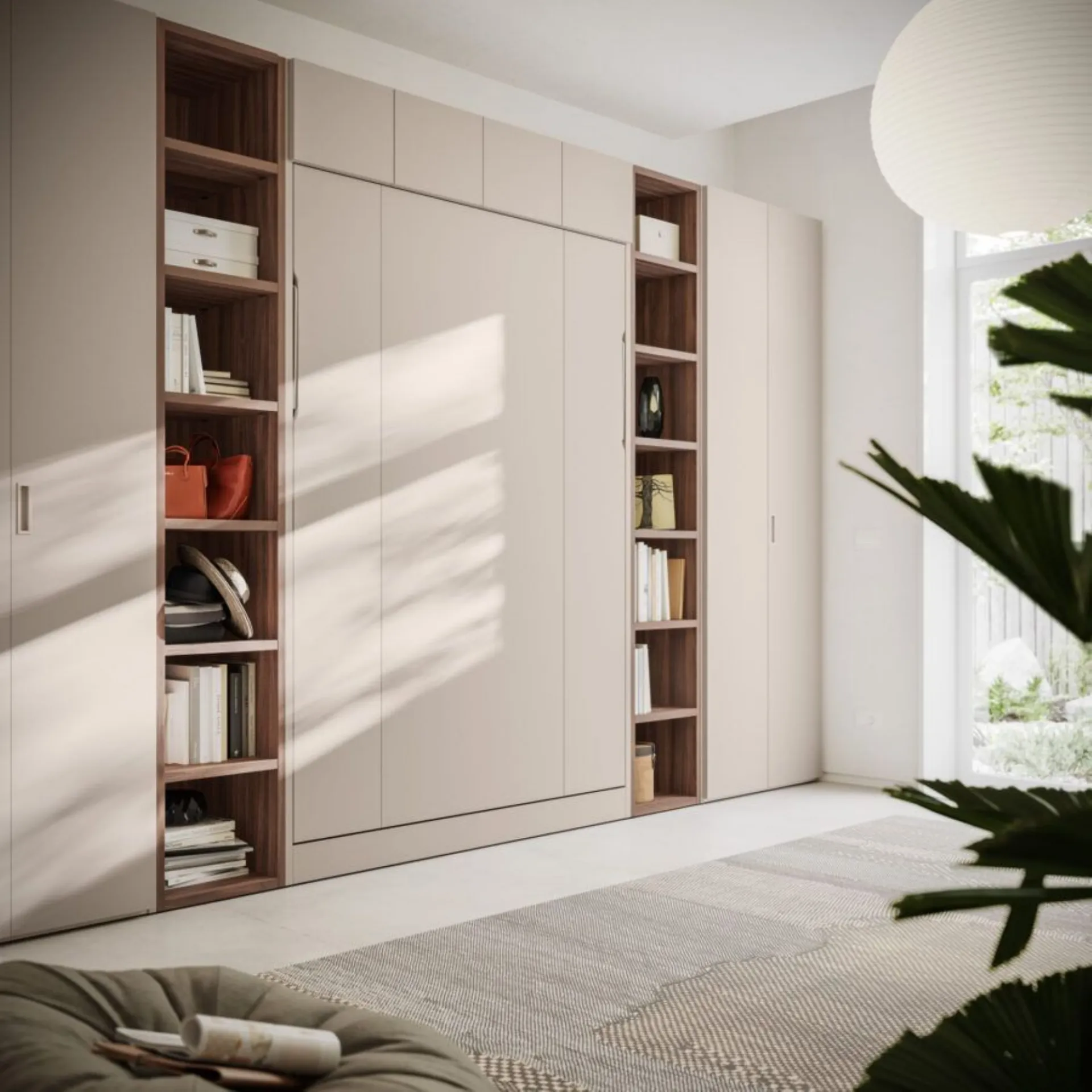 Mottes Mobili propone questo Armadio battente Liscia in Tortora con maniglia M 31 in tinta e colonna libreria in Cotto. Letto Sensai in Tortora. Letto matrimoniale con rete escluso materasso. Composizione l. L 464,3 x H 257,8 x P 48,2 con 3 ripiani interni e tubi appendiabito. L'offerta per questa composizione è di euro 2.200,00 compreso Iva e trasporto, montaggio escluso. Tempi di consegna 40 gg. circa. Per maggiori informazioni contattaci via mail o passa a trovarci nel nostro showroom.