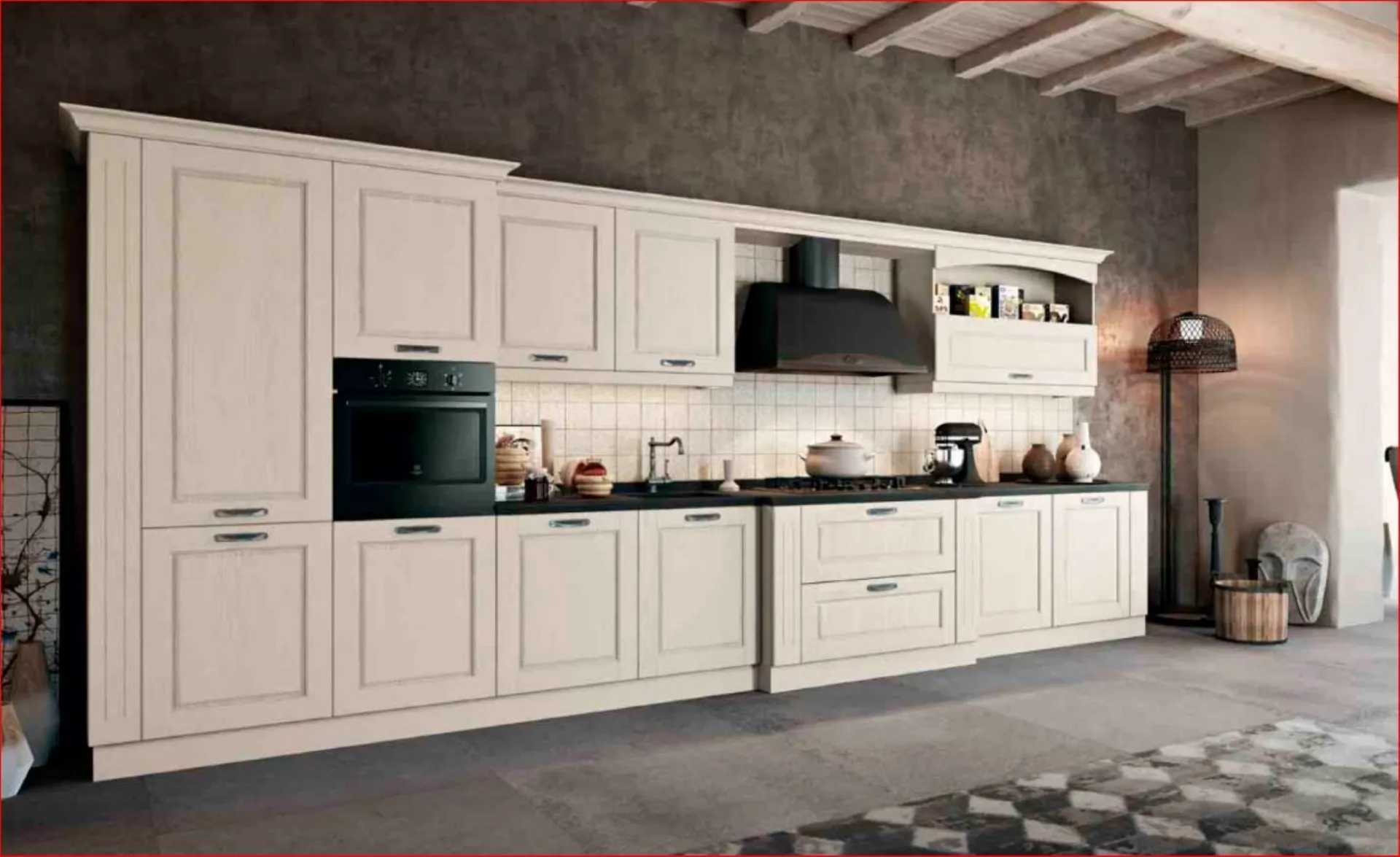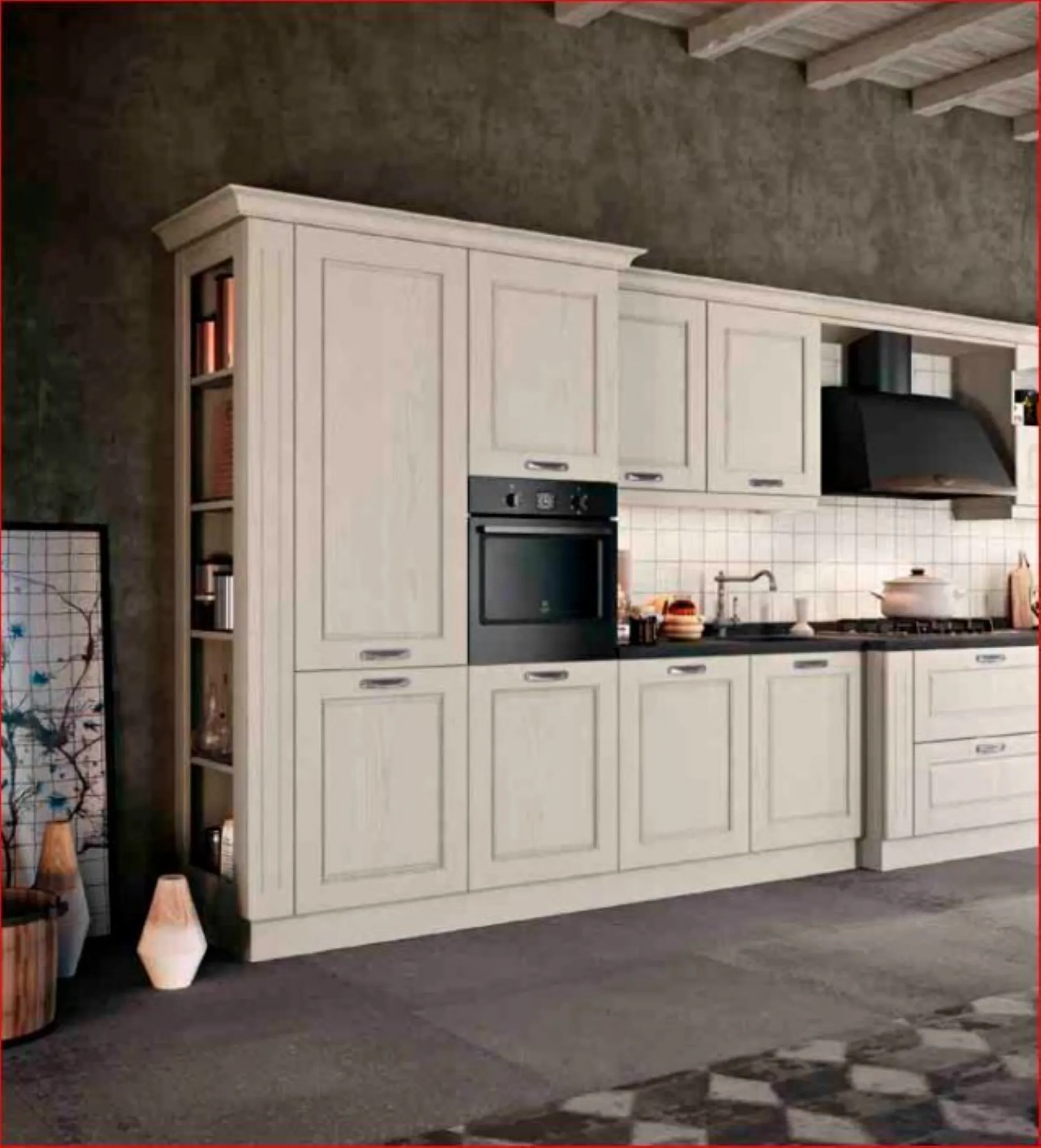 Non sempre il classico è sinonimo di imponenza. In ASOLO 4 l'espressività di tutta la collezione è raffinata, in particolare in questa composizione tra classico e moderno. Lineare ed essenziale con la colonna a giorno e la base sempre a giorno che apre e chiude la composizione. Particolare la zona cottura con il corpo avanzato che lo rende protagonista, e il gioco di colori tra chiaro e scuro. Cucina nuova su progetto , questa composizione viene proposta scontata a Euro 7.800,00 compreso iva e trasporto, montaggio escluso. Per maggiori informazioni contattateci.