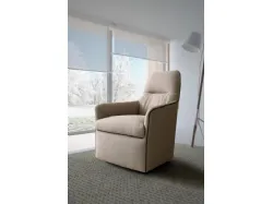 Poltroncina in tessuto con seduta fissa di larghezza: 70cm, profondità: 80cm, altezza: 96cm, volume: 0,54 m³ e peso: 21kg. Disponibile a €600,00, le finiture sono a scelta e i tempi per la consegna vanno dai 40/50 giorni lavorativi.