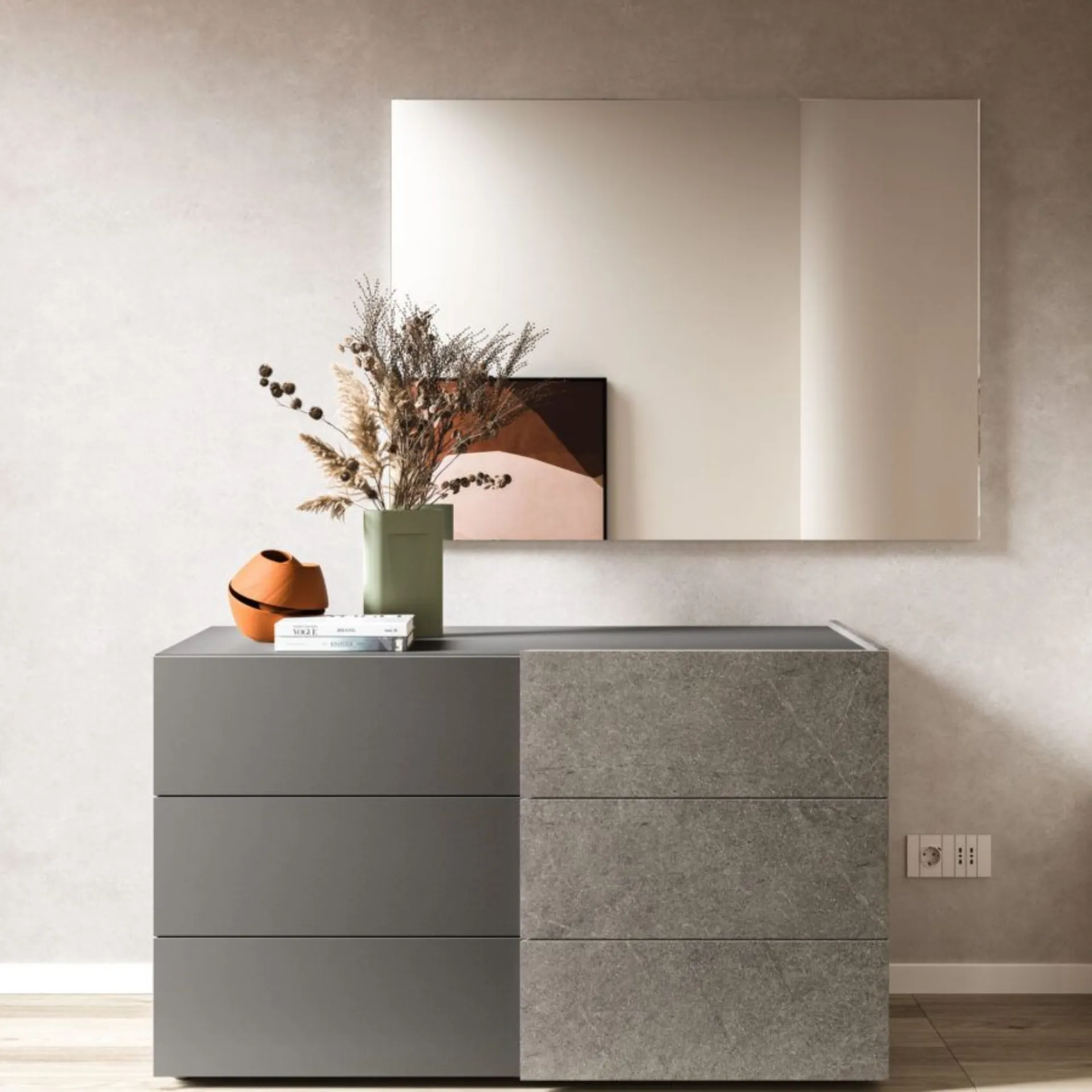 Le nuove collezioni notte ed armadi di Orme interpretano con sapienza, creatività e sartorialità uno stile d’arredo e di vita, in armonia fra contemporaneo e moderno. Sistemi componibili, sistemi modulari, da declinare allo spazio. Soluzioni su misura, ampia gamma di colori e finiture, ricercate e selezionate, lavorazioni speciali al fine di garantire risultati impeccabili, all’insegna della soddisfazione del cliente e del rispetto dell’ambiente. Letto Cremi con giroletto Alfa in Roccia Bolsena. Comodino Double in Lavagna e Roccia Bolsena. Portale cabina Basic in Velluto e armadio senza ante attrezzato con cassettiera e porta camicie in Cotone. l.3001/3200 h.258. Consegna compresa nel prezzo, 40 giorni lavorativi. La nostra offerta per questa camera matrimoniale è di euro 3.500,00 compreso iva e trasporto, escluso rete, materasso e montaggio. Per maggiori informazioni contattaci via mail o passa nel nostro showroom.