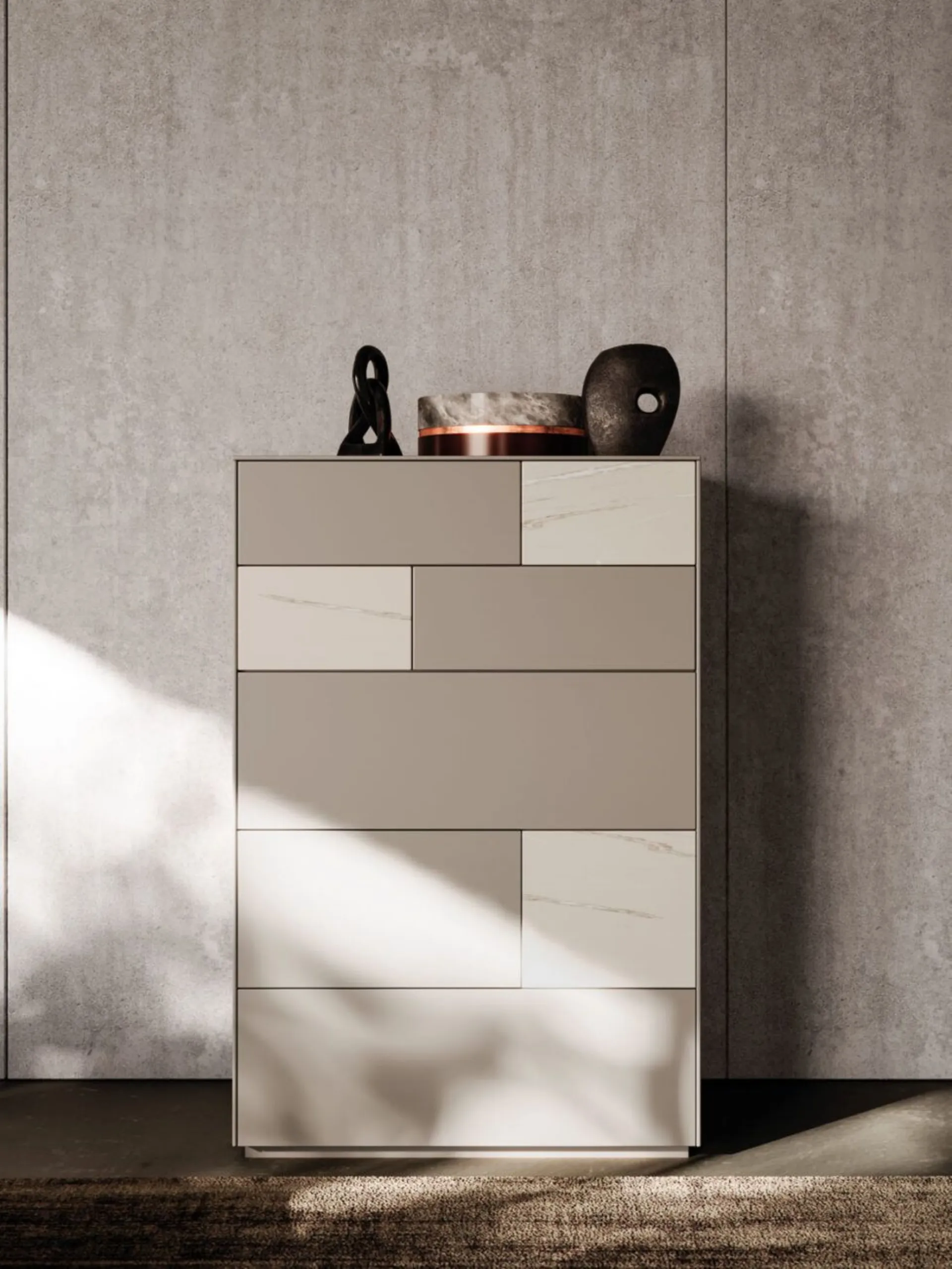 Eleganza e stile contraddistinguono la zona notte proposta da Orme. Nate dall’esperienza e dalla ricerca di Orme, firma del Gruppo Homes, le nuove collezioni notte ed armadi di Orme interpretano con sapienza, creatività e sartorialità uno stile d’arredo e di vita, in armonia fra contemporaneo e moderno. Camera matrimoniale completa di letto modello Tessa con giroletto imbottito Epsilon in tessuto Brunilde BR02. Dispone di elementi notte modello Klee. Doppio comodino a due cassetti e settimanale a cinque cassetti in melaminico Tortora con particolari in melaminico marmo Tenerè. Rete a doghe compresa. Personalizzazione delle finiture senza variazione di prezzo. Consegna compresa nel prezzo, 40 giorni lavorativi. La nostra offerta per questa camera matrimoniale è di euro 3000,00. Per maggiori informazioni contattaci via mail o passa nel nostro showroom.