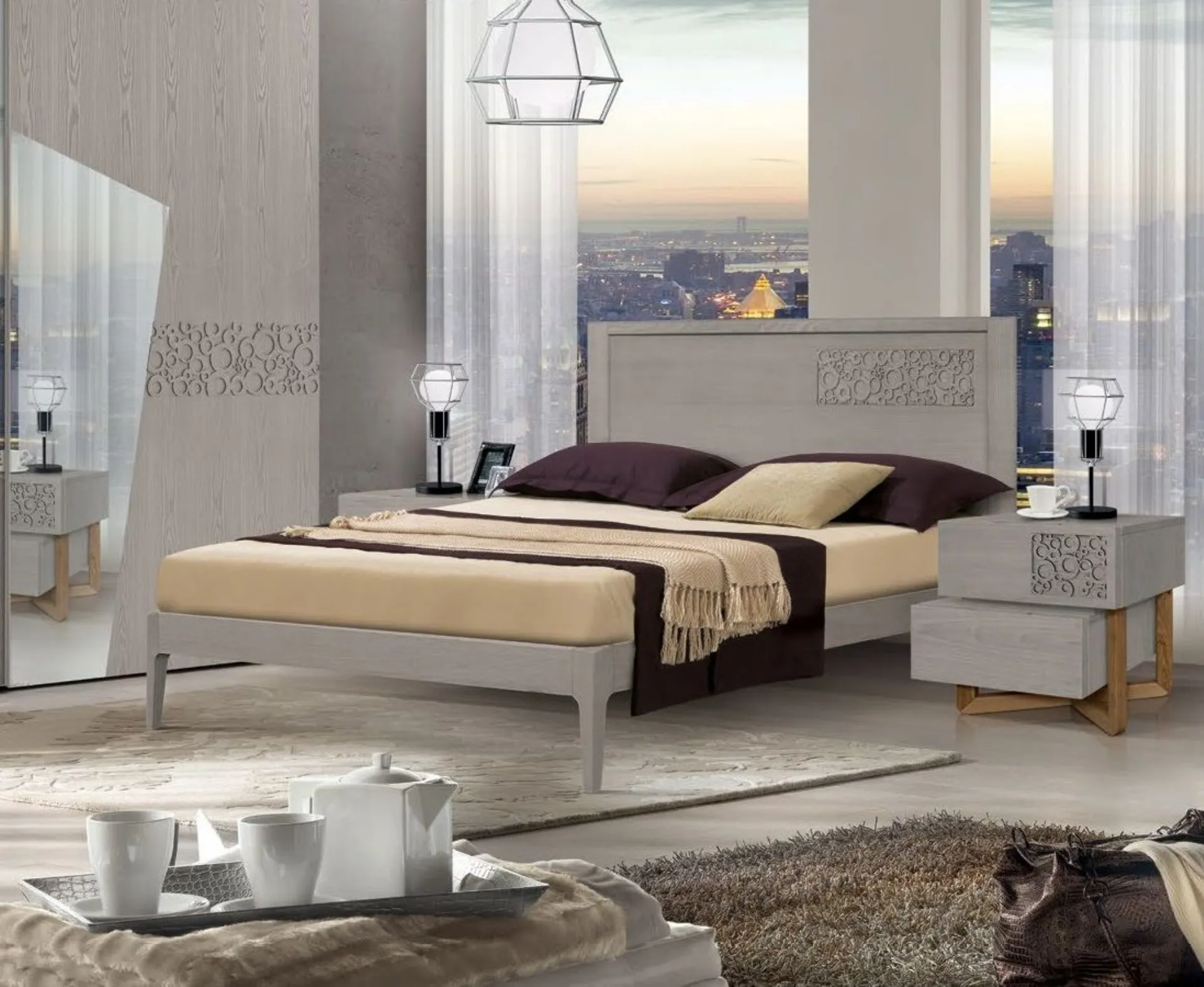 Camera matrimoniale di linea contemporanea in legno massiccio di frassino modello Milena. Camera completa di Armadio in frassino 2 ante scorrevoli, ripiani e appendiabiti interni. Possibilità aggiunta cassettiera interna armadio euro 200,00. Larghezza 274cm, Profondità 65cm, Altezza 248cm. Letto matrimoniale in legno di frassino con testata con traforo Tetris, finitura in fotografia di colore cenere poro aperto. Rete e materasso esclusi. Larghezza 173cm, Profondità 210cm, Altezza 110cm. Comò in legno di frassino di linea contemporanea con tre cassetti con traforo Tetris, cassetti con guide ammortizzate. Larghezza 146cm, Profondità 55cm, Altezza 96cm. Comodino in legno di frassino di linea contemporanea con due cassetti con traforo Tetris, cassetti con guide ammortizzate e basamento intrecciato. Larghezza 58cm, Profondità 40cm, Altezza 60cm. Specchiera rotonda traforata cm 87. Possibilità di scelta delle finiture senza variazione di prezzo. Consegna compresa nel prezzo in tutto il territorio nazionale, 60 giorni lavorativi. L'offerta per la camera Milana è di euro 4900,00. Per maggiori informazioni contattaci via mail o passa a trovarci nel nostro showroom.