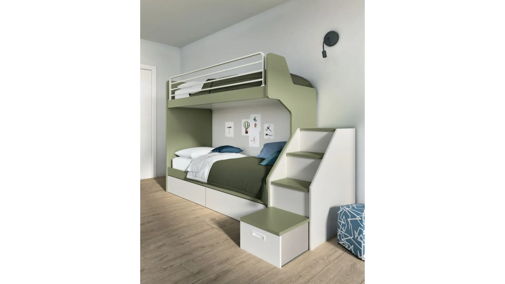 Nel mondo di camerette per la generazione Alpha, la vitalità dei colori, la novità dei materiali e la vibrazione giocosa degli elementi rendono ogni spazio unico ed accogliente. Un ambiente vivace e stimolante, dove il gioco e lo studio si fondono in un'unica esperienza educativa. La composizione dispone di letto a castello con scaletta, li lunghezza totale 250cm, profondità 90cm, altezza 174cm. La scaletta dispone di vani contenitori, la soluzione perfetta che unisce funzionalità, stile e comfort in un unico arredo. In un unico arredo anche il doppio scrittoio, pensato per offrire una funzionalità ottimale. Le due superfici di lavoro permettono di organizzare al meglio lo spazio e di sfruttare al massimo le pontezialità dell'arredo. Libreria "Next" integrata. Per concludere troviamo la cabina armadio angolare, lunghezza 270cm, profondità 123cm, altezza 259cm. Armadio con ante battenti, ripiani ed appendiabiti a vista. Rete inclusa. Escluso invece il materasso. Personalizzazione delle finiture senza variazione di prezzo. Consegna compresa nel prezzo, 30-40 giorni lavorativi. L'offerta per questa cameretta è di euro 3800,00. Per maggiori informazioni contattaci via mail o passa a trovarci nel nostro showroom.