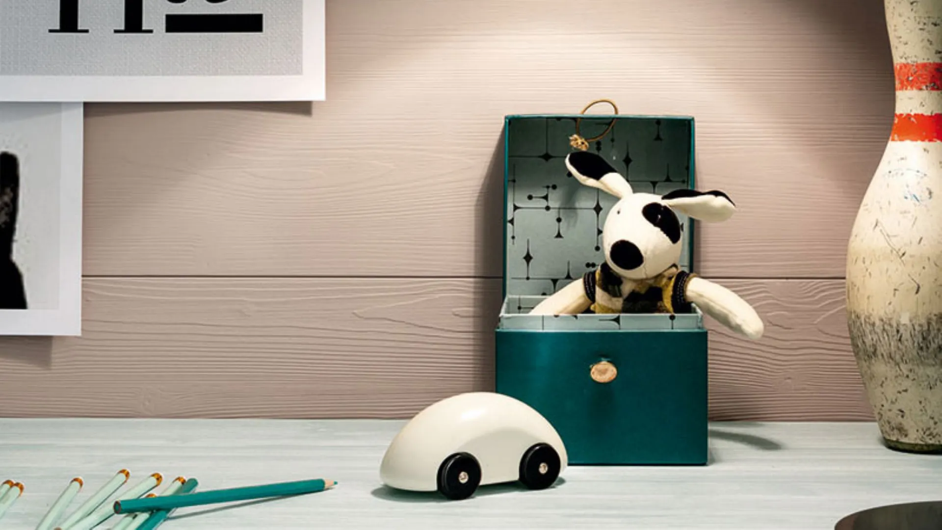 Cameretta realizzata con sviluppo orizzontale, in cui la boiserie con doghe di diverse dimensioni crea movimento e da uno spunto per personalizzare l'ambiente. L'armadio è pensato ad angolo per sfruttare al meglio gli spazi. La libreria è accostata all'armadio e la scrivania in tinta danno una continuità grazie anche all'uso di una testiera imbottita particolare, a cuscino con tessuto trapuntato appeso direttamente all'armadio.
