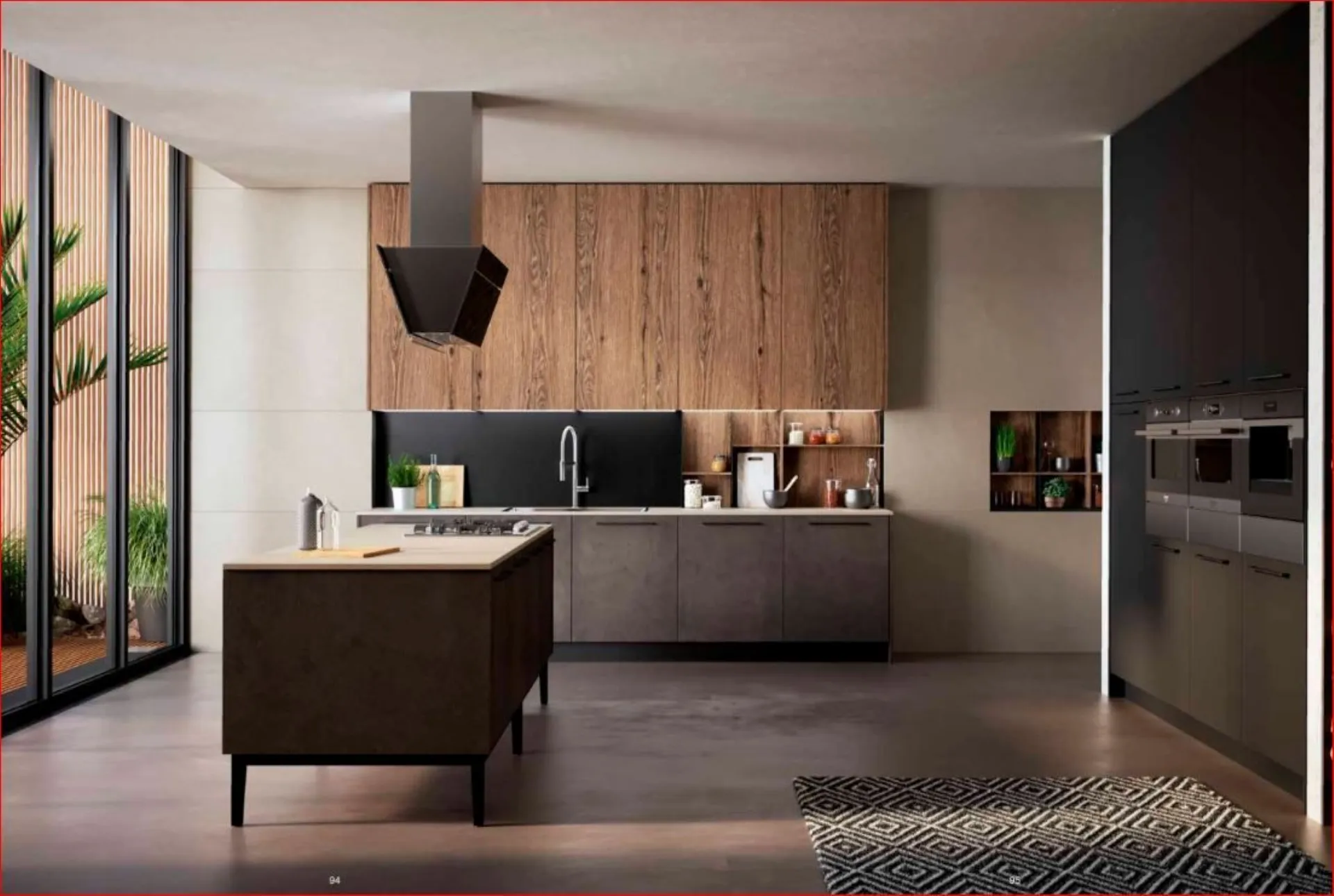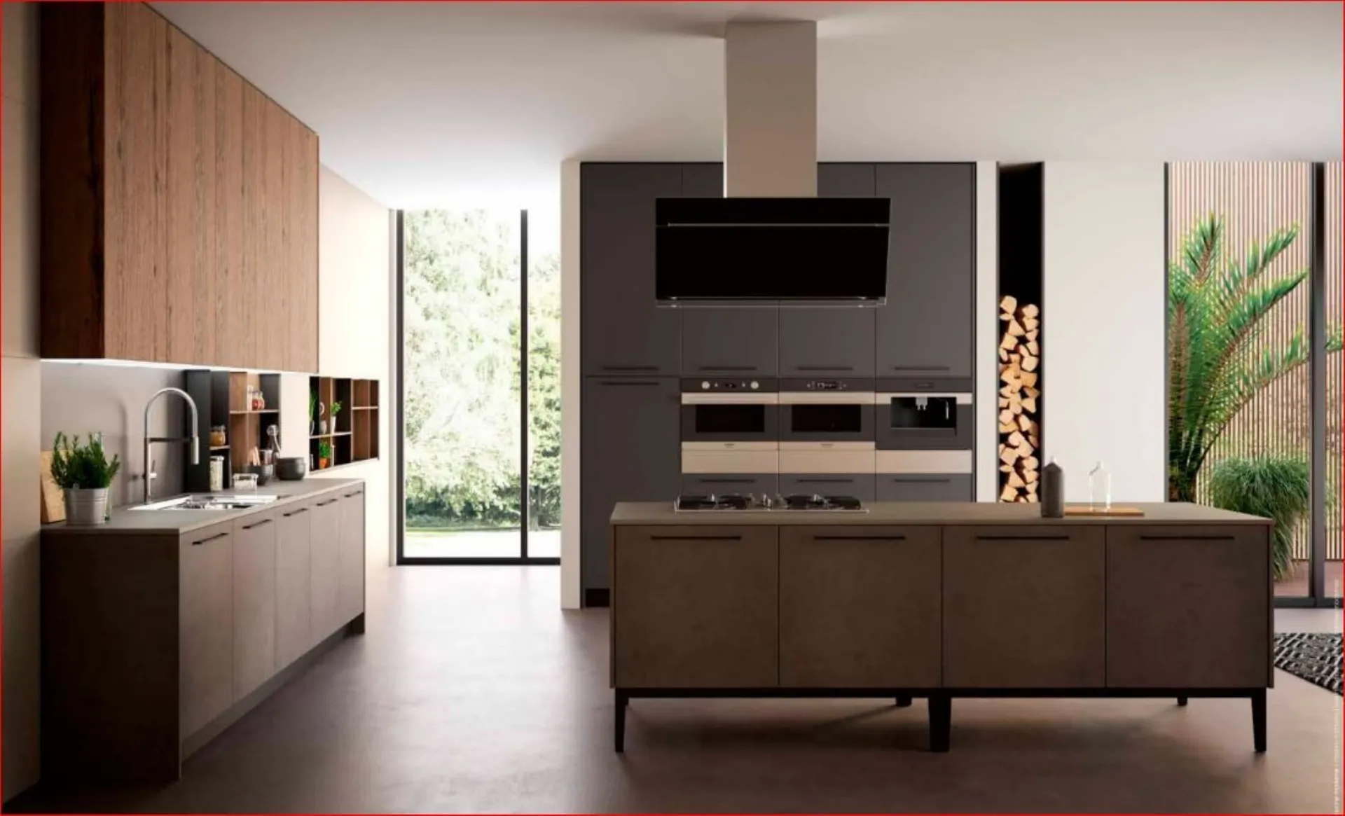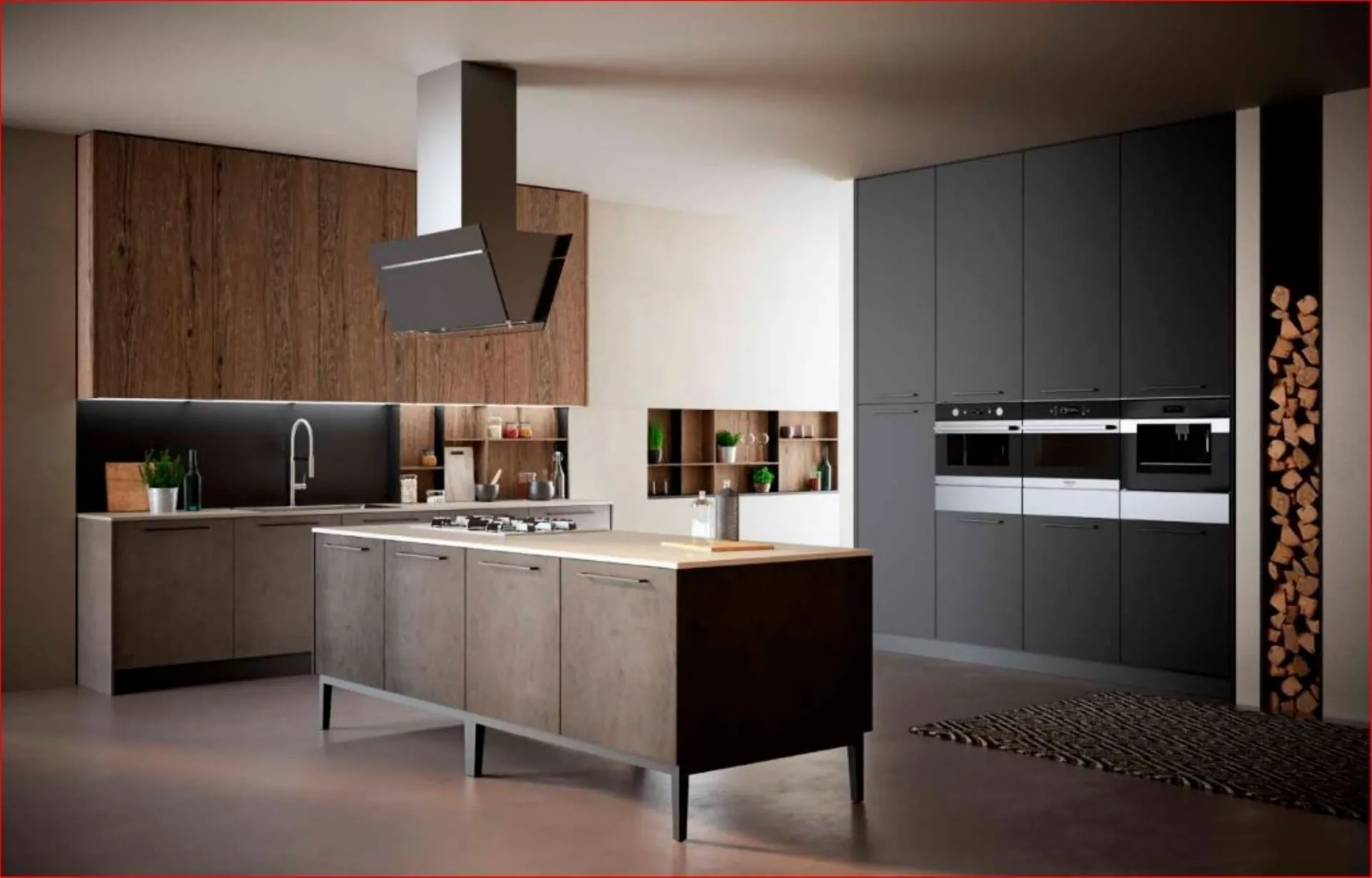 Cucina Kali 9 proposta in questa soluzione prevede per le basi e le colonne il laminato PET opaco Maximatt in finitura LAVAGNA, mentre per i pensili è stato scelto una finitura più calda con il laminato Rovere CUOIO. Maniglie e zoccoli in alluminio nelle varie finiture danno corpo come al basamento in metallo, alla composizione. Previsto il piano in laminato sp.2 cm ( con la possibilità dello spessore cm.4 oltre che ad altri materiali come il quarzo o il gres . Elettrodomestici BEKO nella proposta con la possibilità a vostro piacere di cambiarli. Composizione in offerta h. cm. 240 con possibilità in h.216