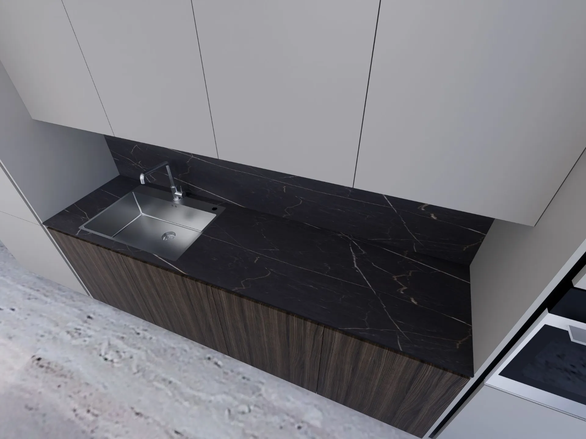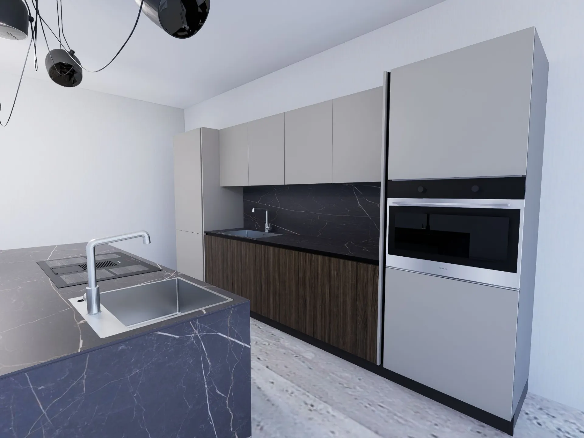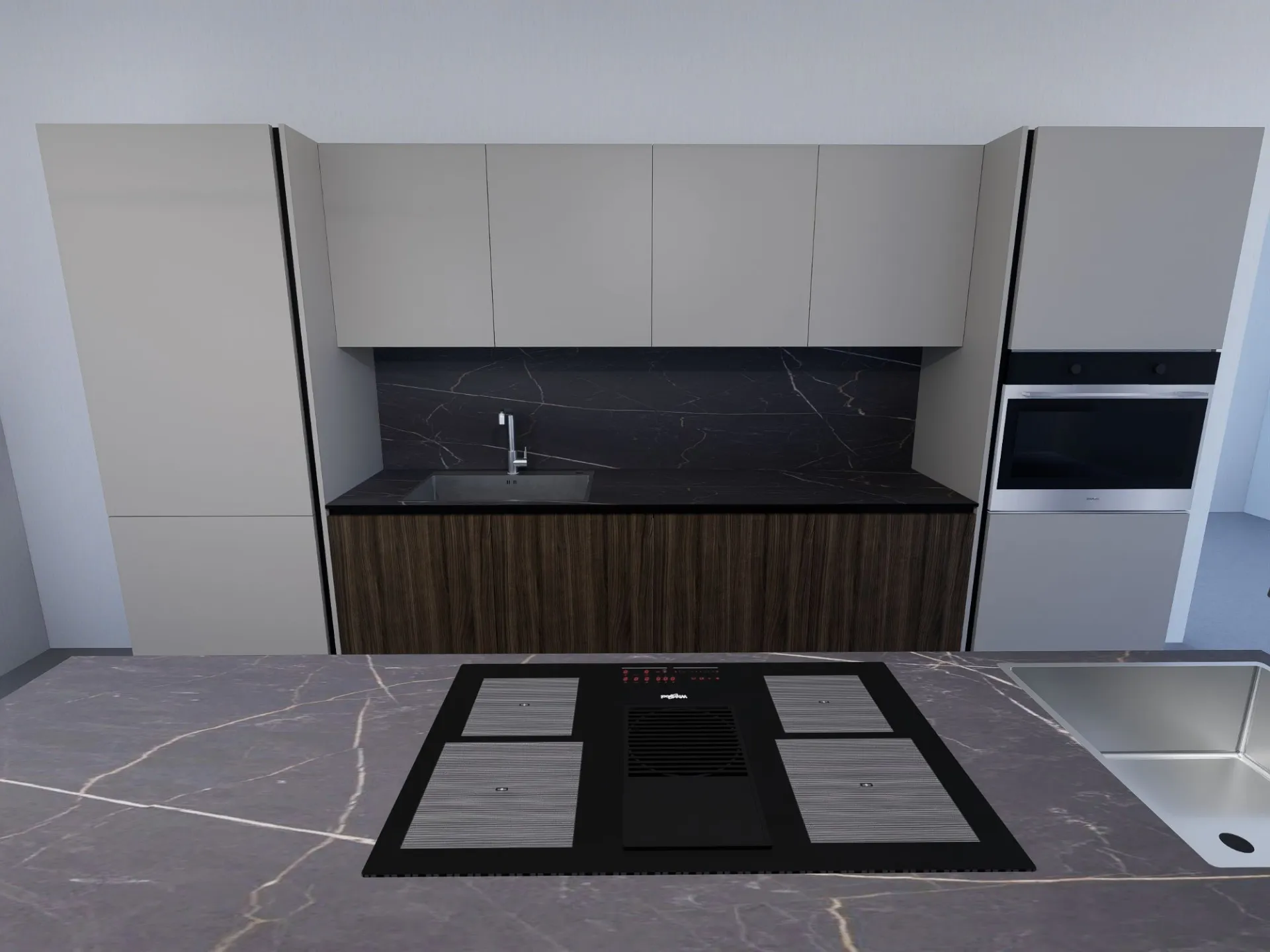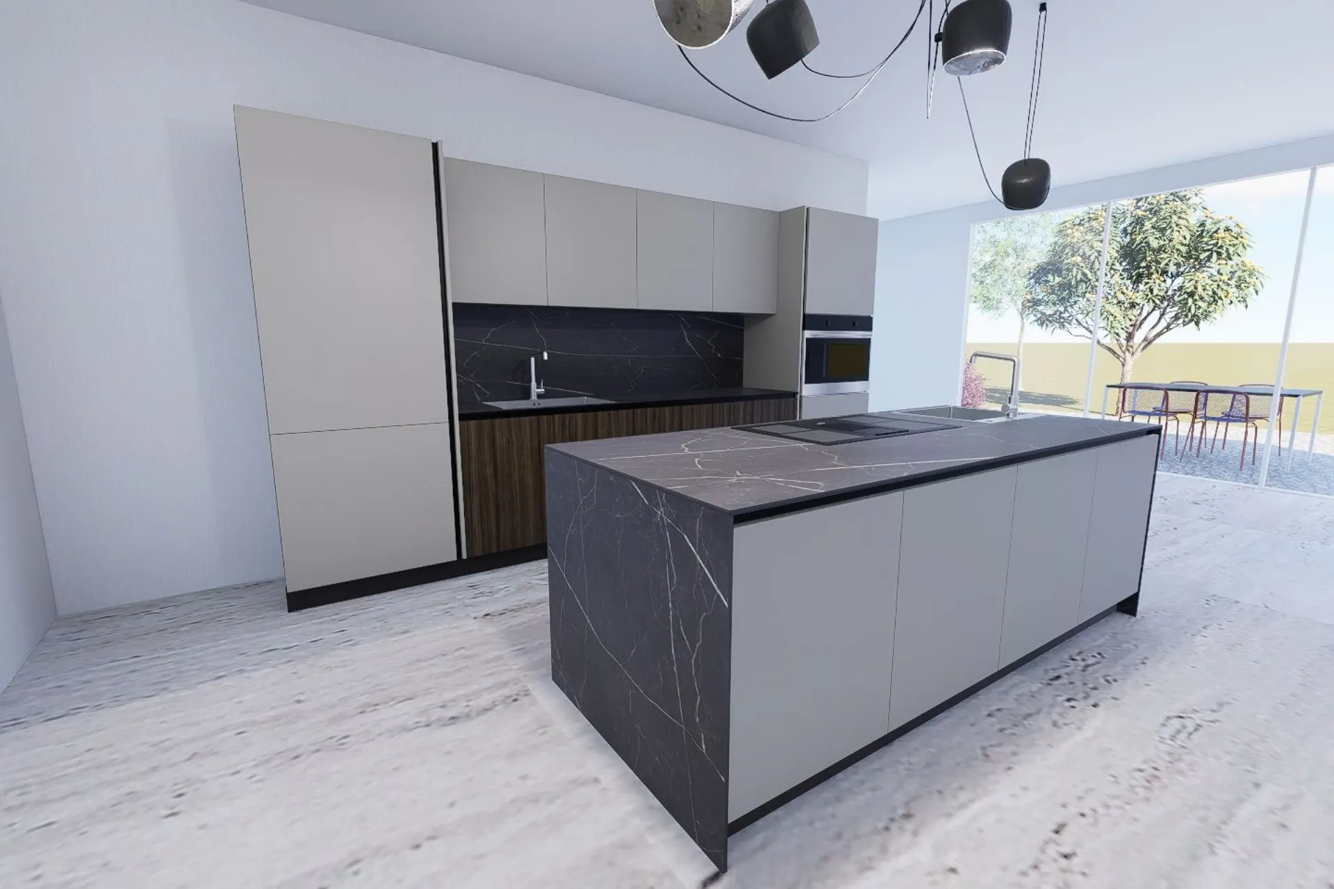 Cucina modello KALI' con frontali in minato PET colorato e laminato effetto legno, piano top in HPL sp.1,2 completa di Elettrodomestici Whirlpool ( frigo e forno l.75 - piano cottura indizione con cappa integrata - lavastoviglie scomparsa totale ) + 2 lavelli inox monovasca e relativi miscelatori. Il tutto completamente personalizzabile . La proponiamo a € 10.500,00 compreso iva e trasporto, no montaggio.