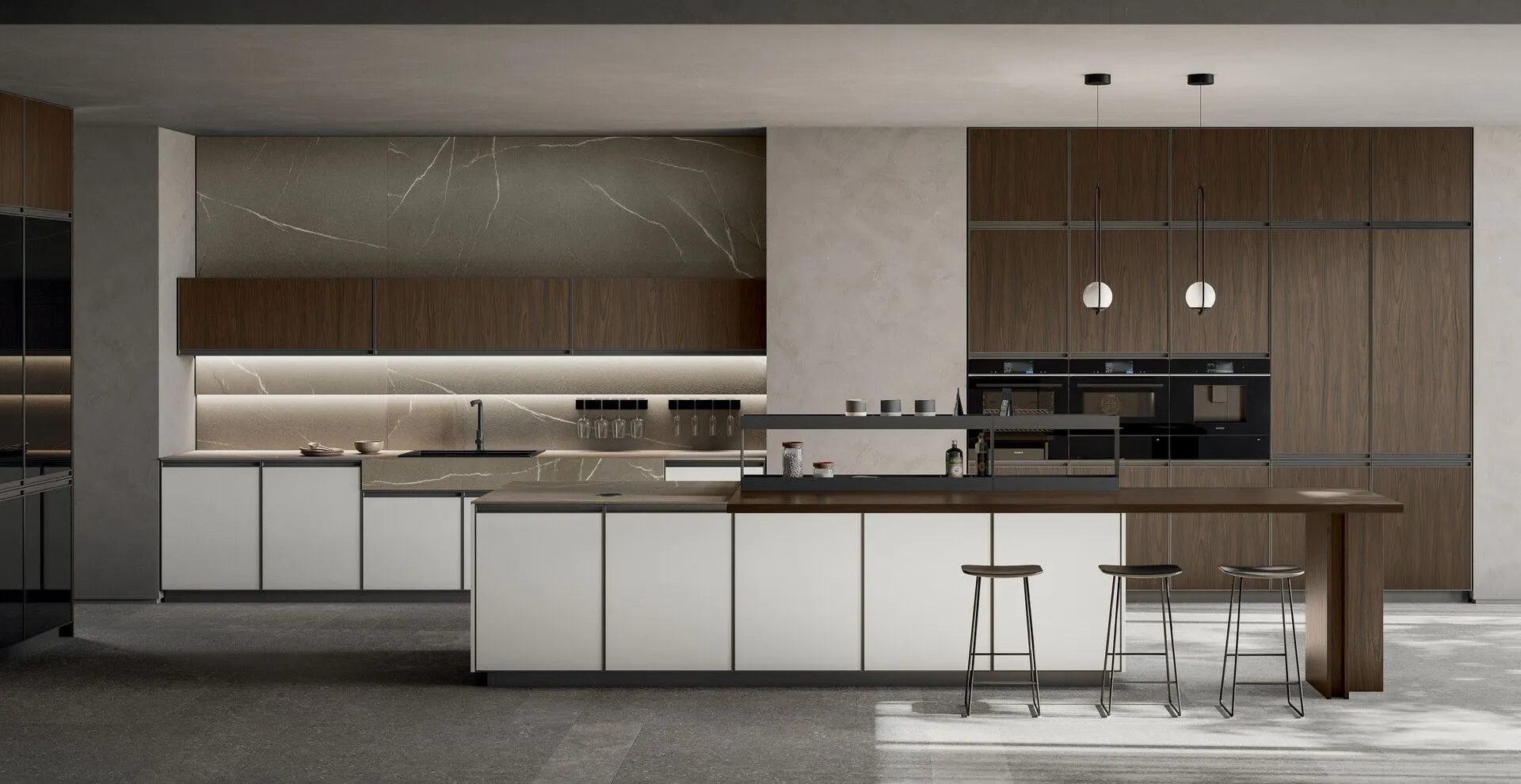 Offre inoltre l’opportunità di inserire diversi elementi del sistema Fusion, come i moduli lavanderia e i Pocket, che svelano un mondo da attrezzare a piacere con l’inserimento della “semplice” dispensa fino anche all’intera area operativa della cucina.