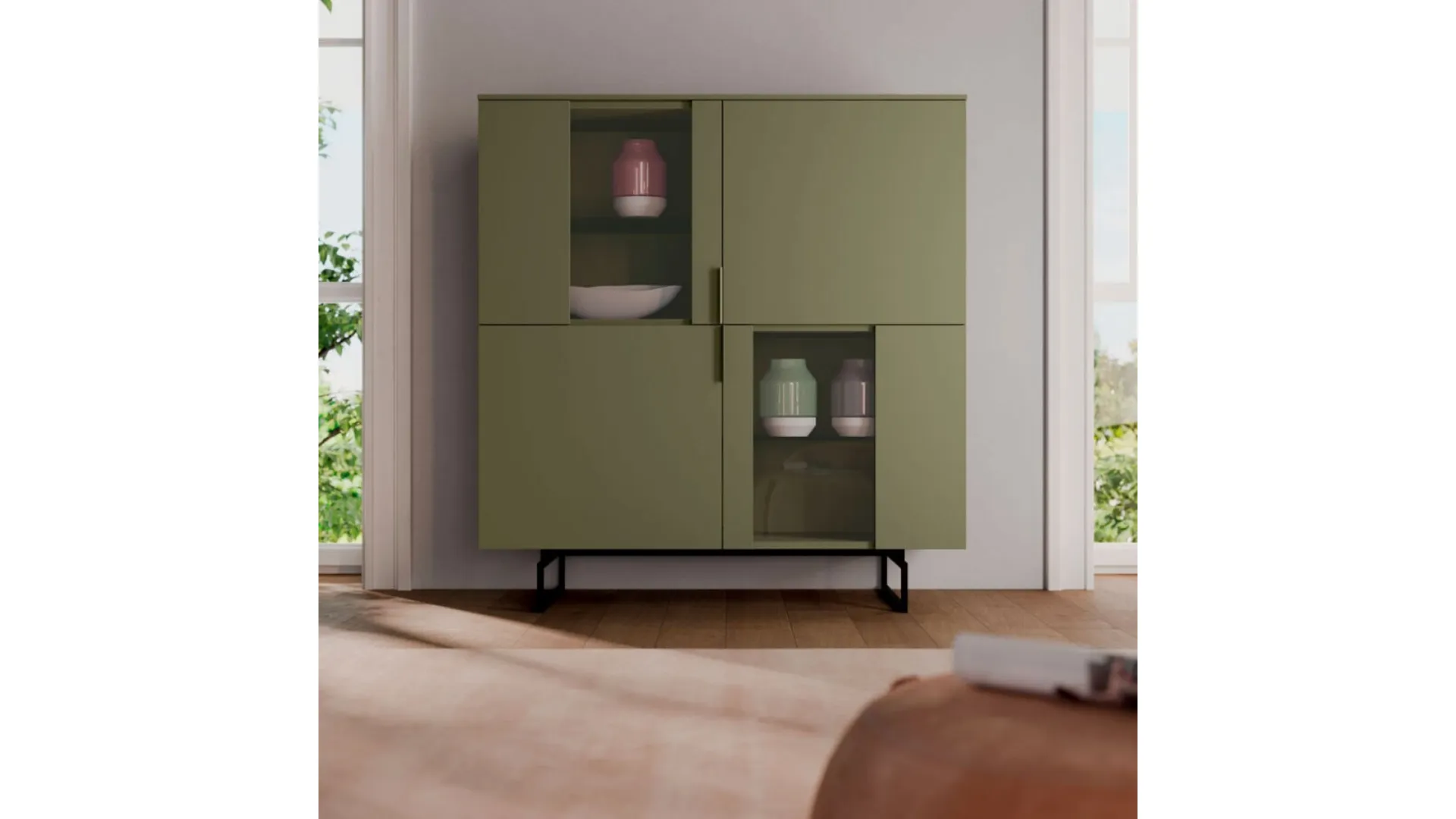 Ciascuna soluzione di madie in stile moderno alle vostre necessità garantisce affidabilità, contenuto fondamentale per Orme. Liberate il vostro gusto accostando i moduli di questa proposta in legno di Orme, per osare, ma con gusto! Orme presenta varie configurazioni realizzabili con la variegata offerta di madie per il living. Il tipo di Soggiorni in stile moderno è concepito da Orme per coniugare eleganza, per merito della struttura lineare, e funzionalità. Nei Soggiorni delle abitazioni contemporanee chiediamo elementi componibili multifunzionali che siano in grado di organizzare alla perfezione gli spazi, come il tipo in legno di Orme. Modularità e varietà di elementi per incontrare il gusto e le esigenze di ognuno, per vestire di semplicità i gesti di ogni giorno. Composizione porta-tv moderna in finiture materico sbiancato e melaminico salvia, di lunghezza 330cm, altezza 184cm e profondità da 35 a 48cm. Basi sospese con maniglia filo e pensili con apertura push-pull. Composizione su ordinazione con finiture dei materiali personalizzabili, disponibile in 40-50 giorni lavorativi. La nostra proposta è di €2.100,00.