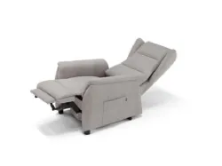 Poltrona Lift-Relax realizzata con meccanismo motorizzato. La struttura solida è assemblata con parti esterne e interne in agglomerato di legno (multistrato e massello di legno) ricoperta da poliuretano espanso indeformabile. Non sfoderabile. Piedi in PVC.