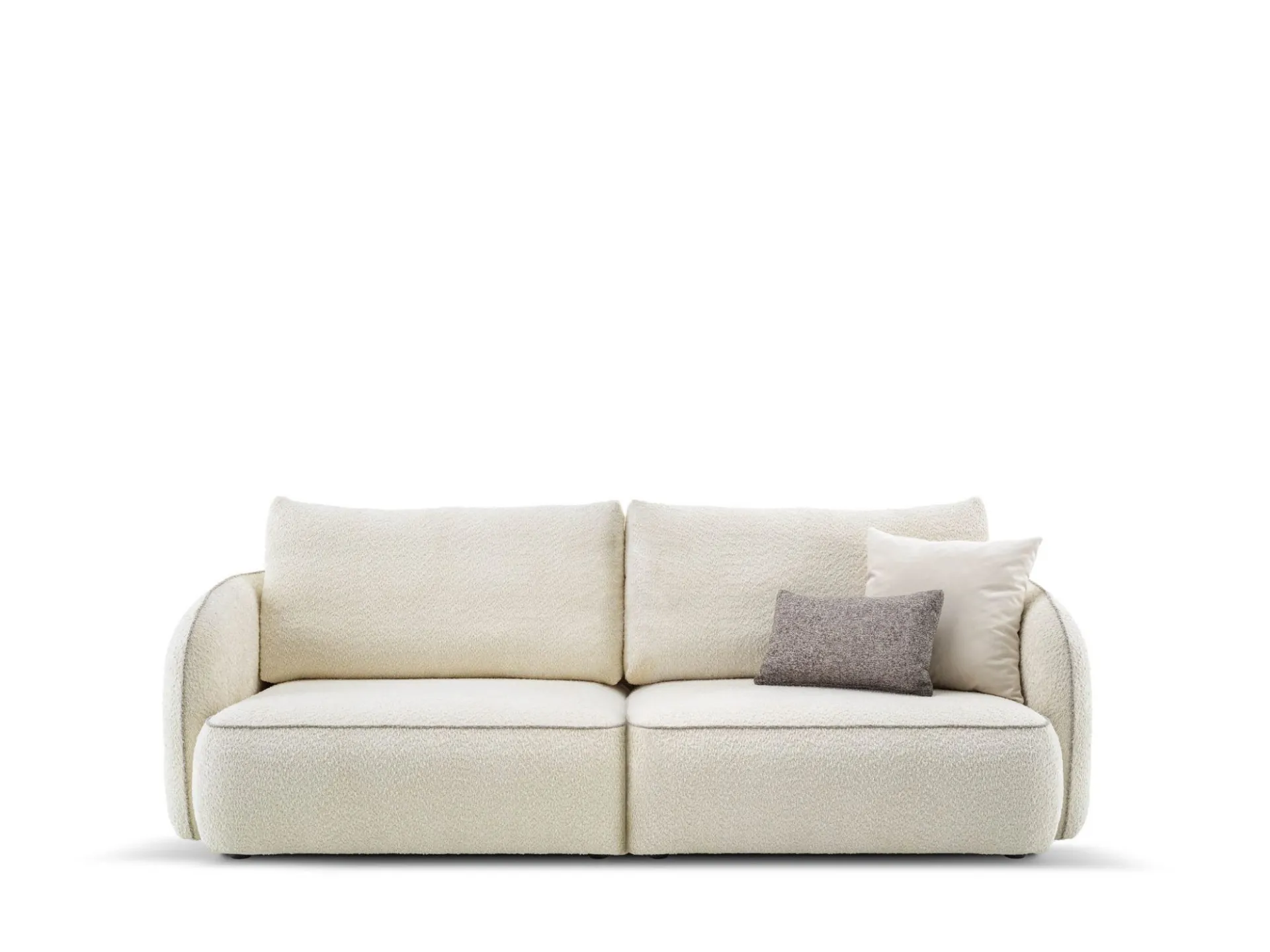 La prima cosa che colpisce è la struttura monoscocca continua: un segno morbido, senza interruzioni, che scorre lungo tutta la base e si solleva appena da terra con piedini bassi (5 cm) antiscivolo e quasi impercettibili. Lo schienale a cuscini – disponibile nelle versioni Togo Double e Togo Double Party – conferiscono morbidezza alla seduta, per un sostegno ottimale della schiena.