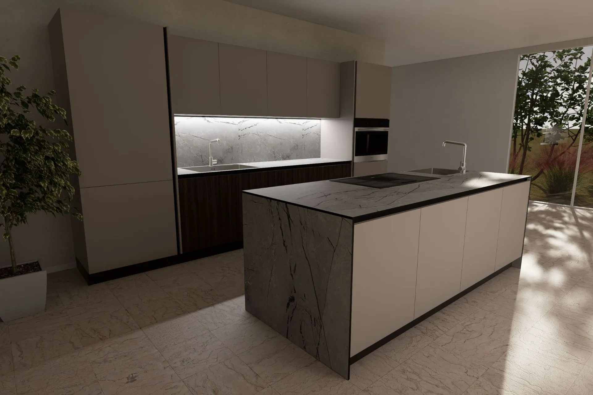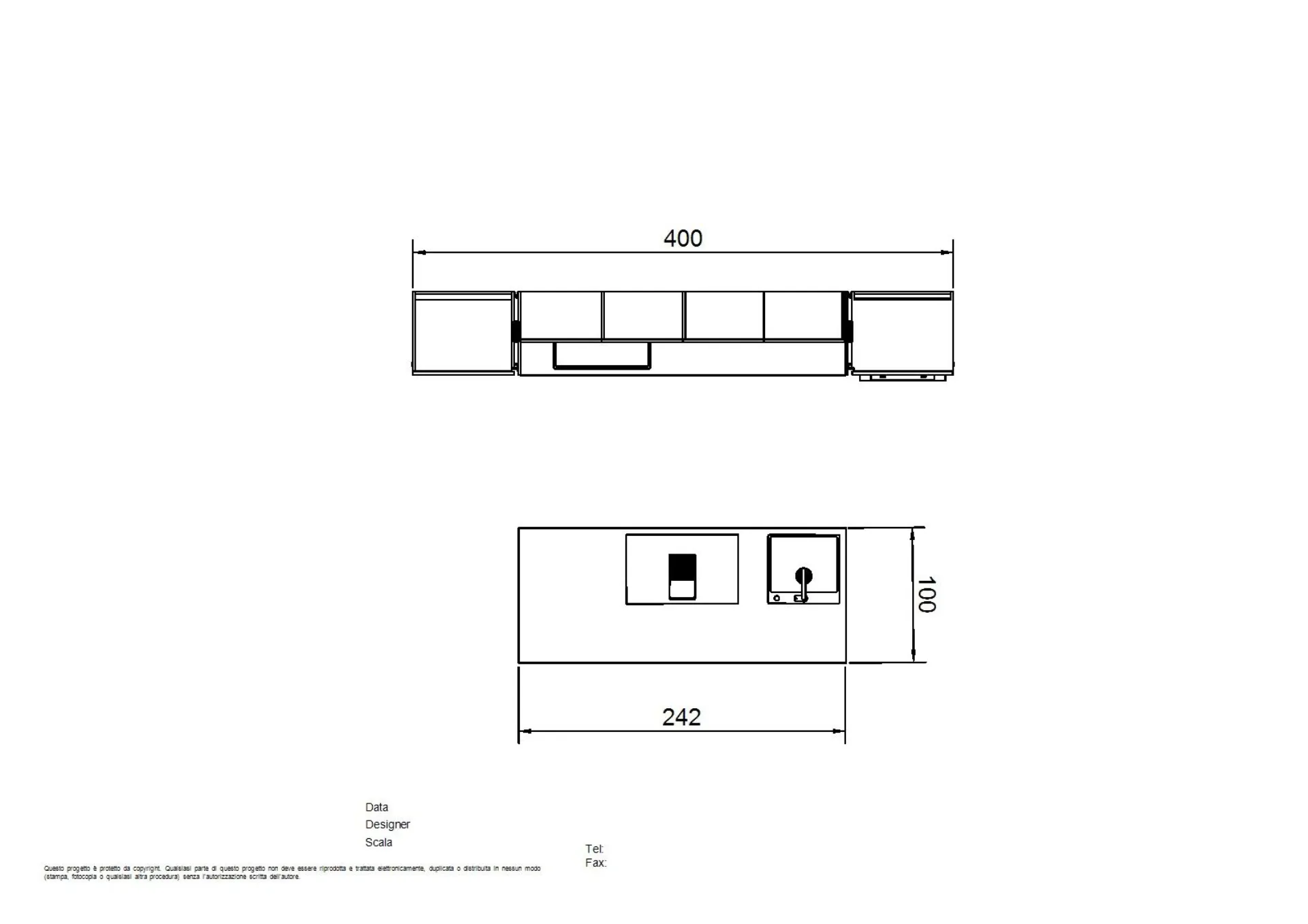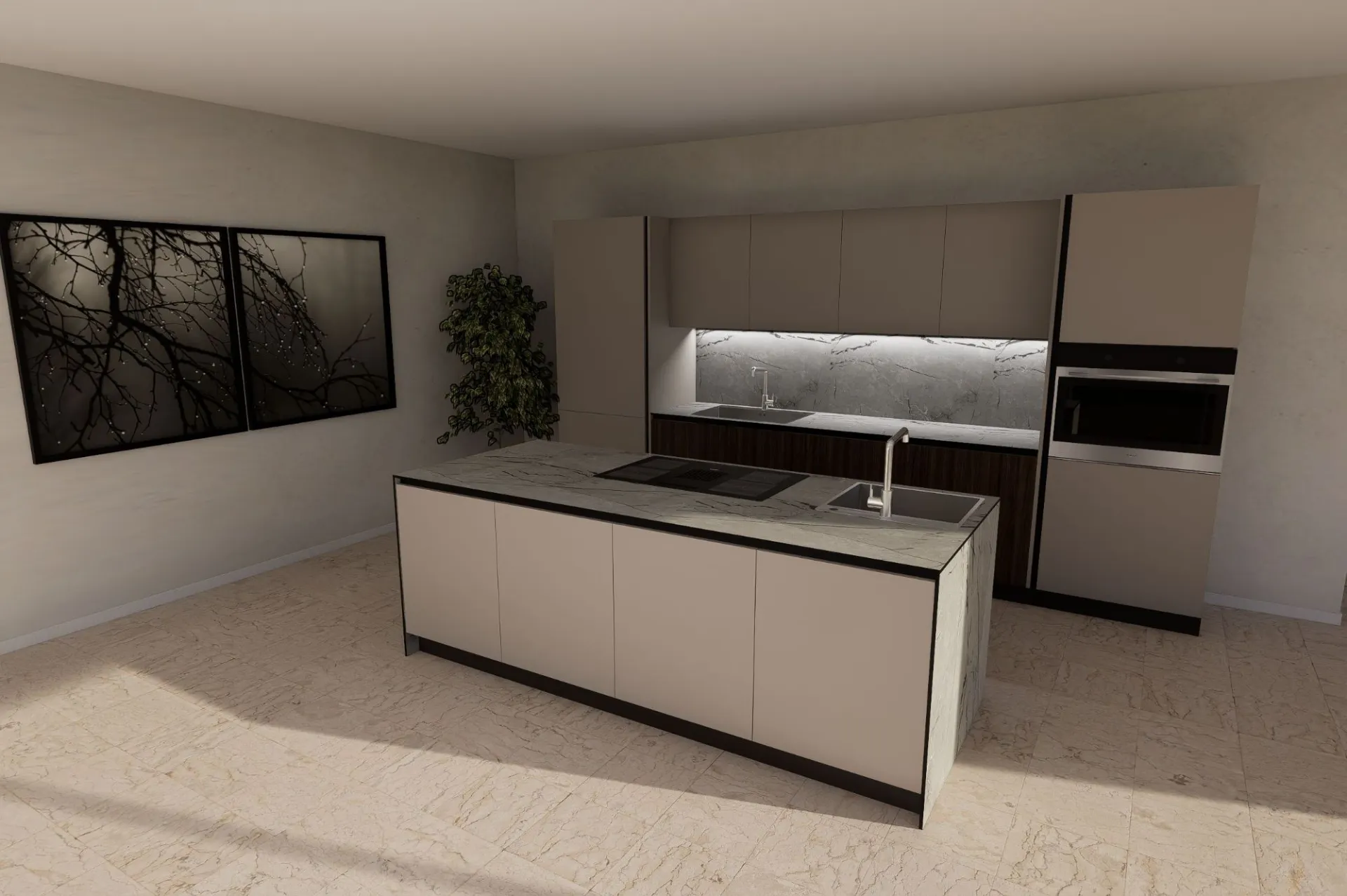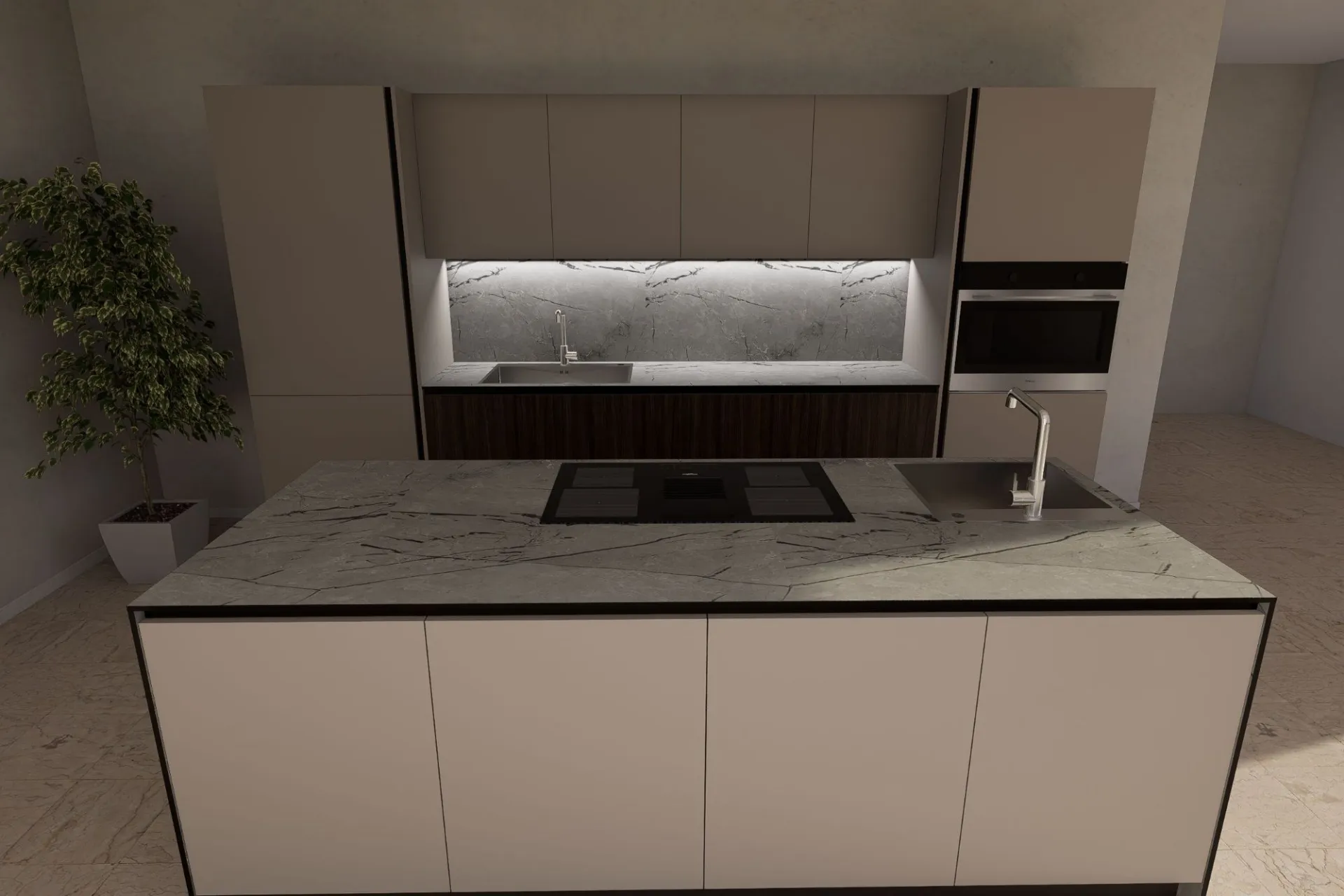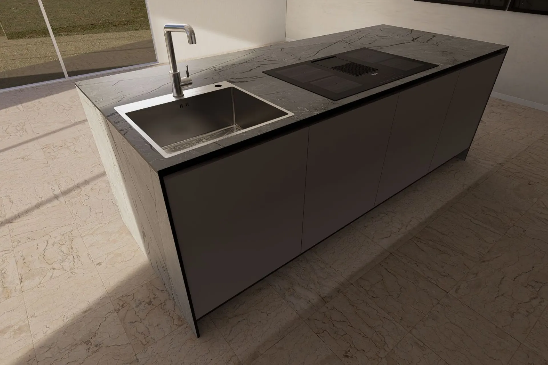 Mottes mobili propone questa cucina lineare da cm. 400 più isola centrale da cm. 242 p.100 in laminato Pet in vari colori. Proposta con piano di lavoro più schienale e fianchi isola in HPL vari colori - Essendo una cucina nuova su progettazione si possono cambiare misure e finiture a piacimento dal catalogo. Mottes Mobili la propone a Euro 10.900 compreso Iva e trasporto, montaggio escluso