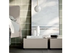 Il letto Larissa è proposto in composizione con il gruppo notte Lego, composto da diversi elementi a cassetto. La composizione completa è proposta con finiture personalizzabili a partire da €2.100,00.