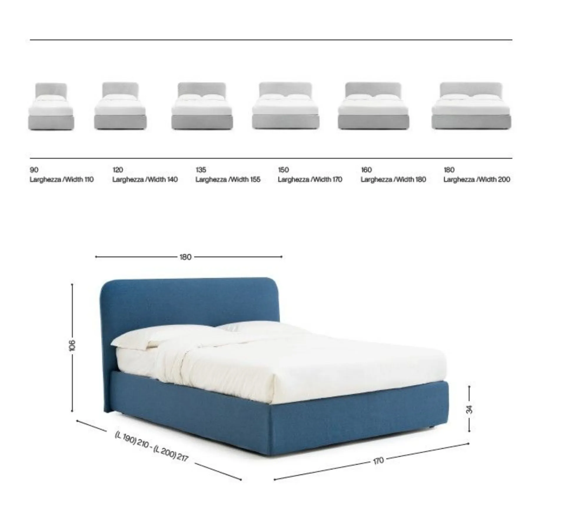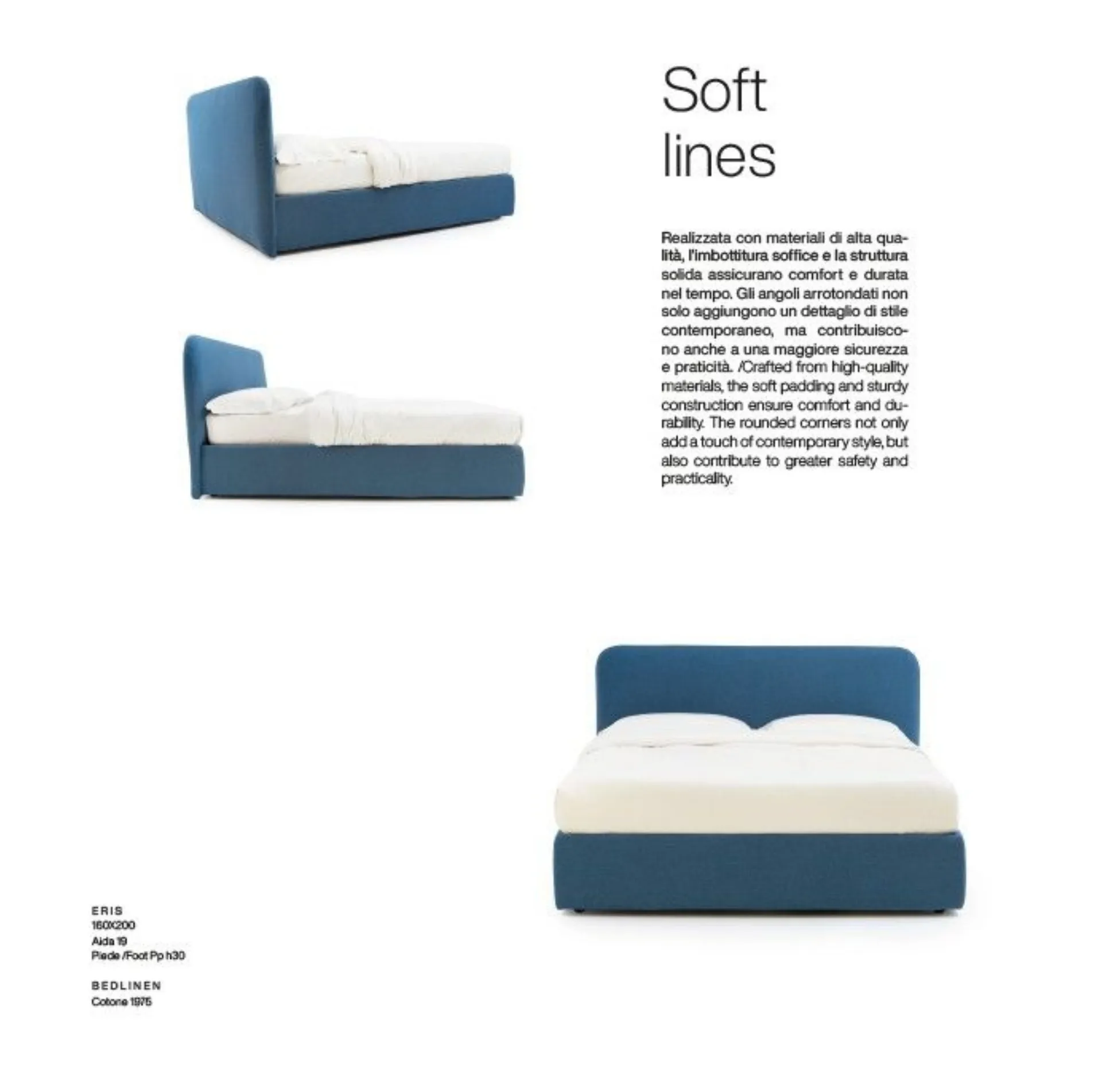 Mottes mobili lo propone con rete a doghe da 160x190 o 160x200 a € 980,00 o con rete da 180x200 a € 1.100,00. Per piedino in legno h.11 in 4 colori maggiorazione di Euro 30,00. Prezzi compresi di iva e trasporto e tempi di consegna di circa 40 gg. lavorativi - montaggio escluso