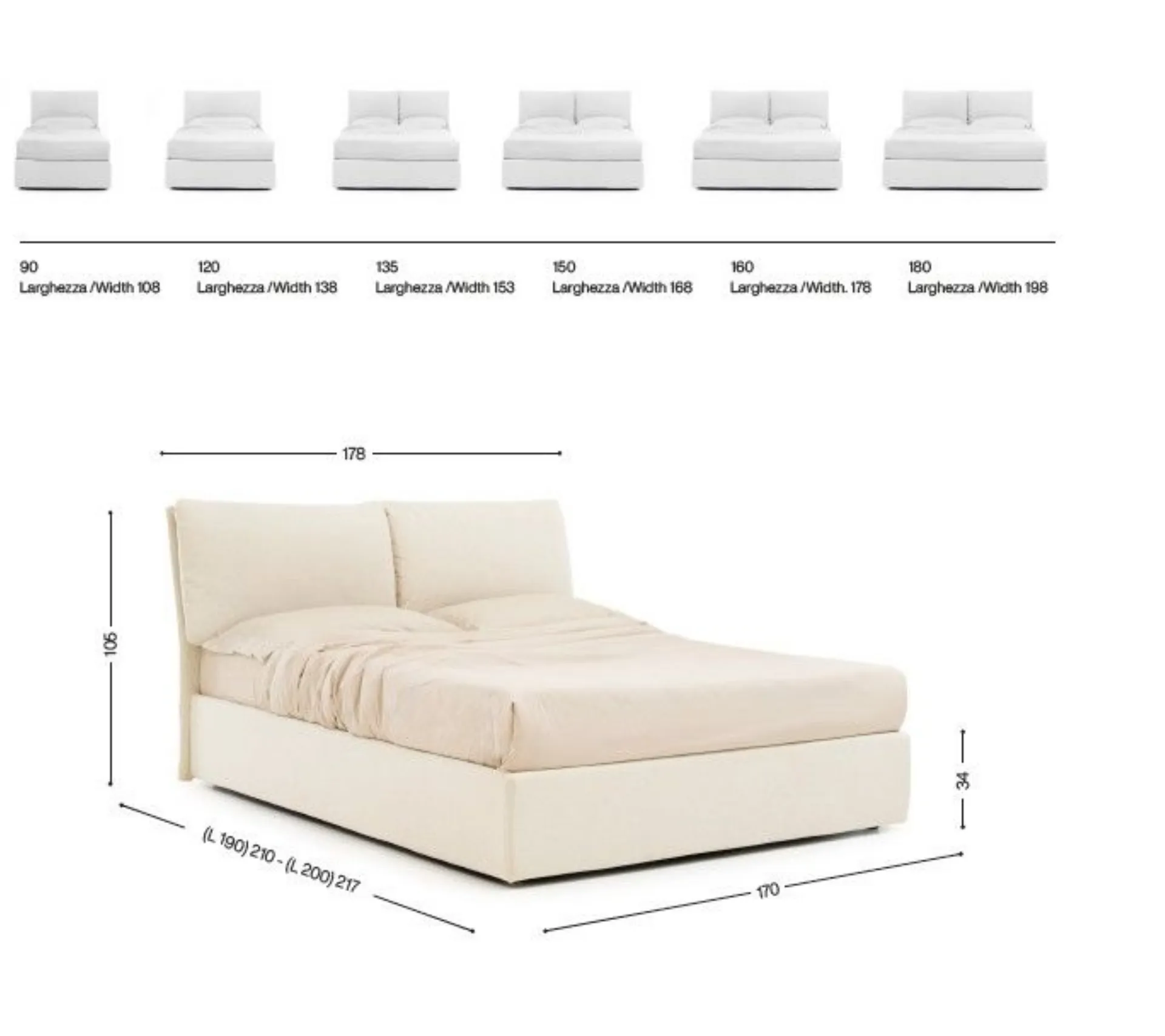 Il letto mod. MERCURIO con contenitore, Mottes mobili lo propone con rete a doghe da 160x190 o 160x200 a € 980,00 o con rete a doghe da 180x200 a € 1.150,00. Per piedino in legno h.11 in 4 colori maggiorazione di € 30,00. Prezzi compresi di iva e trasporto e tempi di consegna di circa 40 gg. lavorativi