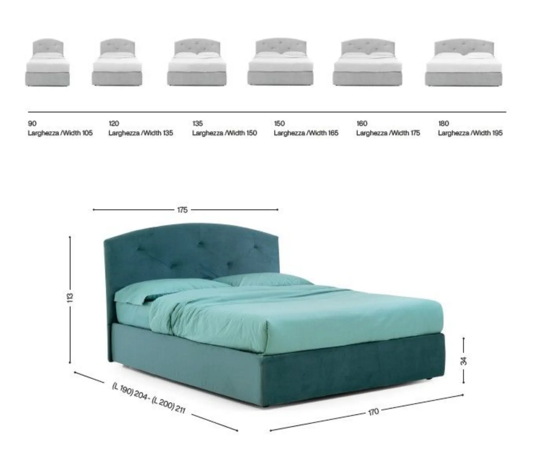 Il letto mod. SATURNO con contenitore, Mottes mobili lo propone con rete a doghe da 160x190 o 160x200 a € 950,00 o con rete a doghe da 180x200 a € 1.050,00. Per piedino in legno h.11 in 4 colori maggiorazione di € 30,00. Prezzi compresi di iva e trasporto e tempi di consegna di circa 40 gg. lavorativi