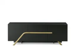Madia con scocca in laccato Nero e dettaglio in metallo Bronzo spazzolato. Da semplice elemento di supporto e strutturale, la gamba diventa elemento decorativo e distintivo della madia: disponibile in tre finiture metalliche, si inserisce nei frontali e li attraversa con un tratto deciso. Ha una lunghezza di 210cm, profondità 55cm, altezza 75cm. Consegna compresa nel prezzo, 30-40 giorni lavorativi. La nostra offerta per questa madia è di euro 3000,00. Per maggiori informazioni contattaci via mail o passa nel nostro showroom.