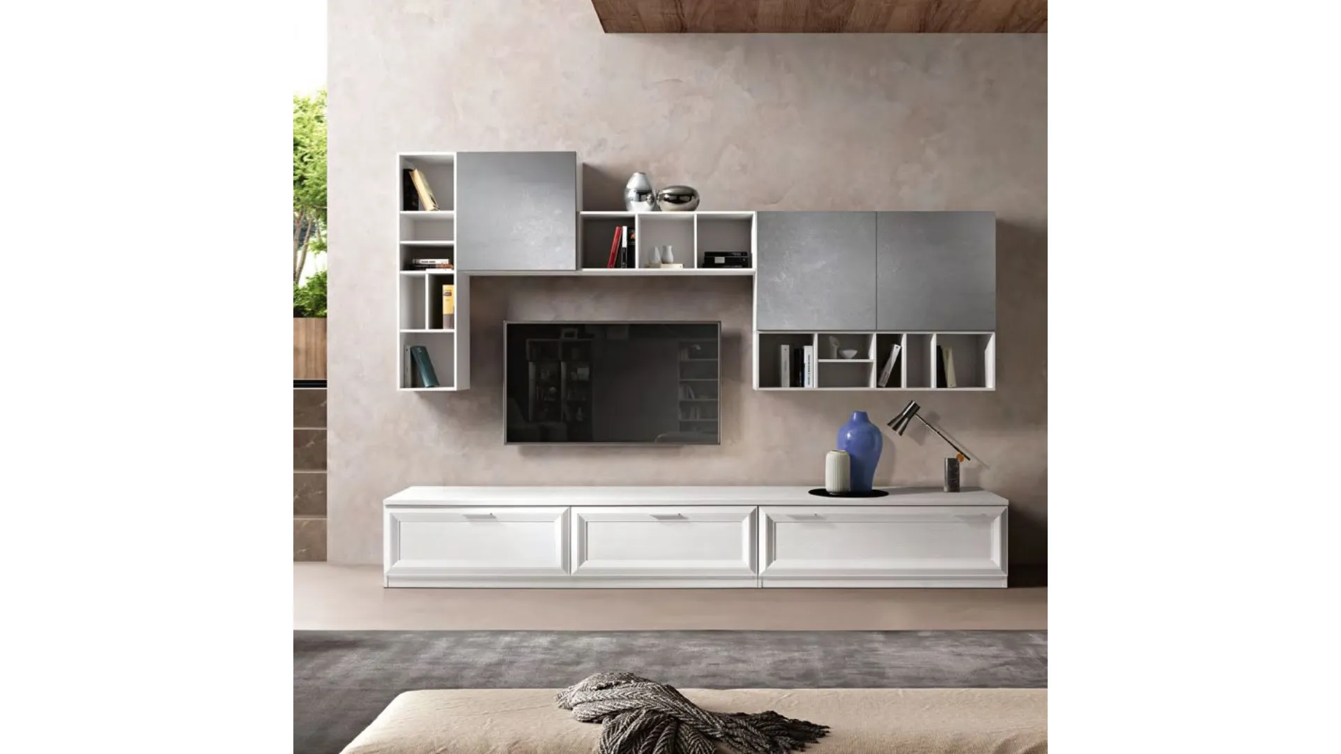 Vieni a scoprire il mobile living minimal perfetto per chi ama l'eleganza senza tempo e la funzionalità senza compromessi. Il suo modulo base a terra è una dichiarazione di semplicità sofisticata. Dotato di tre cassettiere, ognuna personalizzabile con una maniglia che rispecchia il tuo gusto personale, offre un'organizzazione impeccabile per tutti i tuoi oggetti essenziali. Inoltre, la sua ampia superficie d'appoggio ti consente di esporre con eleganza foto di famiglia, oggetti d'arte o qualsiasi altra cosa tu desideri. Al centro, il vano porta TV è pensato per offrire un'esperienza di intrattenimento senza eguali, mentre i pensili sospesi aggiungono un tocco di leggerezza e modernità alla composizione. Grazie alla loro apertura push-pull, puoi accedere facilmente al loro contenuto senza interruzioni visive, mantenendo così l'estetica minimalista del mobile. Infine, i vani a giorno aggiungono versatilità allo spazio, consentendoti di esporre libri, piante o qualsiasi altra cosa desideri mettere in mostra. Con il suo design pulito e senza tempo, questo mobile living minimal diventerà il centro di attrazione del tuo salotto. Mobile in melaminico in finitura Argento e bianco frassino come in foto. Personalizzazione delle finiture senza variazione di prezzo. Ha una lunghezza di 300cm, Altezza 200cm, Profondità 60cm. Consegna compresa nel prezzo, 30-40 giorni lavorativi. La nostra offerta per questo mobile living è di euro 1850,00. Per maggiori informazioni contattaci via mail o passa nel nostro showroom.