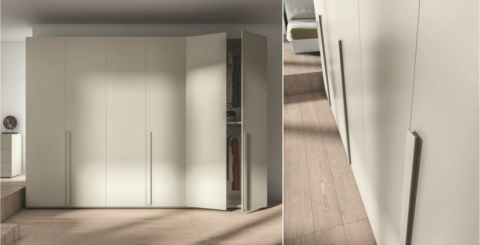 Armadio moderno a sei ante battenti, modello Easy 06, la qualita' si nota dai spessori impiegati, pannelli belle e ben curati nei particolari, una selezioni di materiali essenze, laminati materici con venature di legni in rilievo. La nostra offerta per questo mobile ha una lunghezza 261 cm. (sei ante da 60 cm. circa) Haltezza 258 cm. Profondita' 58 cm. interno sei ripiani movibili e una cassettiera a tre cassetti.