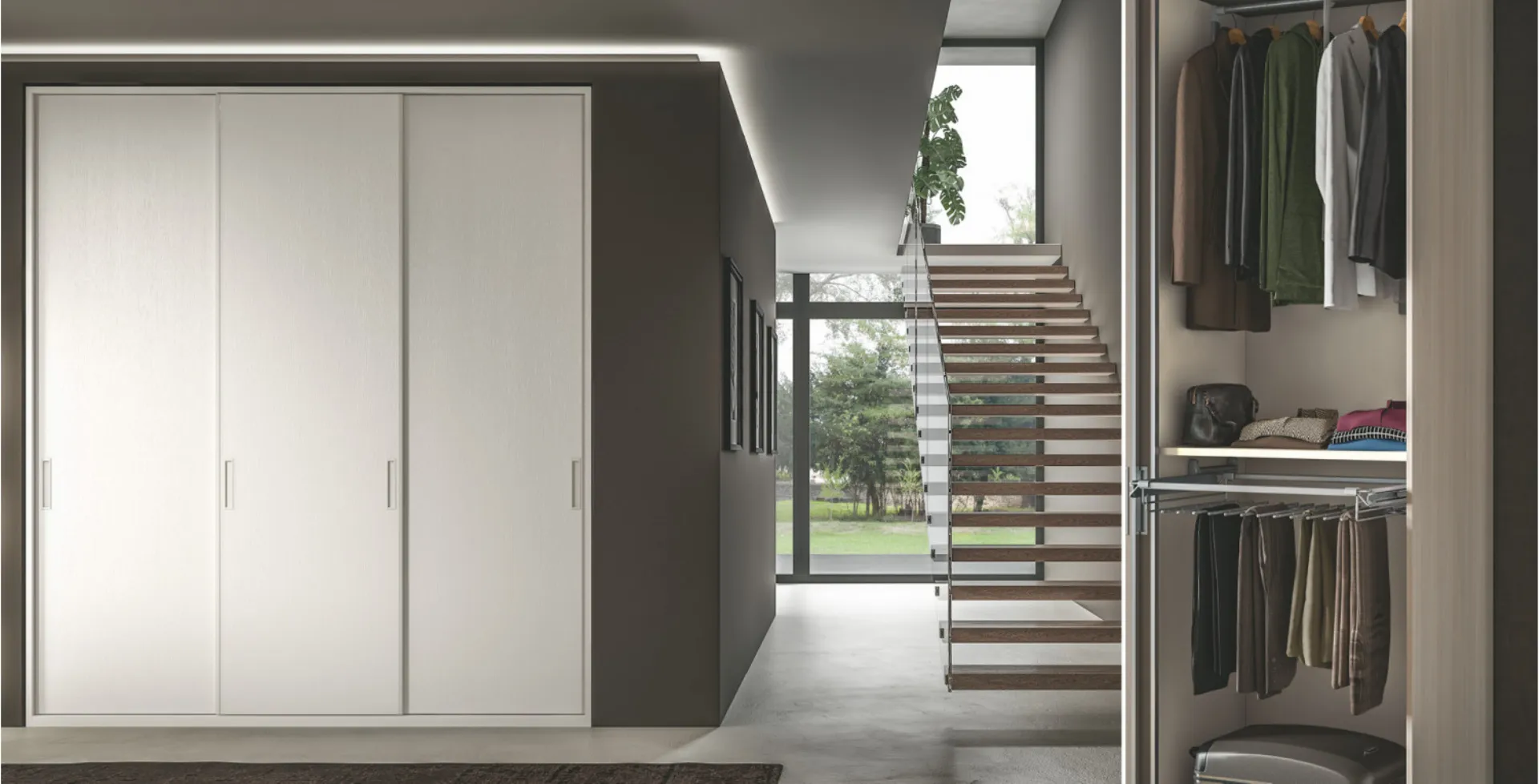 Armadio scorrevole modello Easy, a tre ante, la funzionalita' e praticita' senza rinunciare alla qualita'. Le dimensioni di questo mobile, lunghezza 275 cm. Haltezza 258 cm. Profondita' 64 cm. Le tre ante sono interne in luce all'armadio per limitare gli ingombri. L'interno ci sono tre ripiani movibili e una cassettiera a tre cassetti. La Scelta dei materiali, venature del legno, e' personalizzabile dal cliente, come meglio arreda casa vostra.
