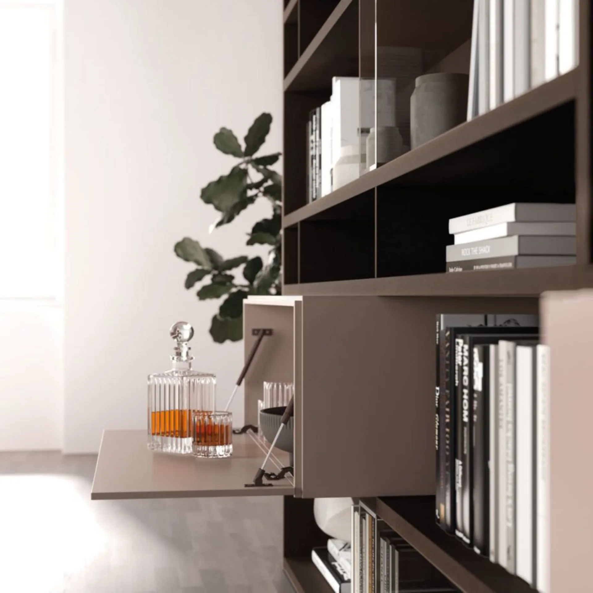 Un sistema completo per arredare e organizzare lo spazio giorno trovando sempre una collocazione ideale per il microcosmo di libri, ricordi e oggetti che sono parte integrante della quotidianità. Una libreria arricchita di divisori in diversi materiali e elementi chiusi che creano ritmo e alternanza di tonalità per un living personalizzato. Libreria a spalla orizzontale in melaminico dekor Bronzo con pensili Compongo in laccato opaco Ortensia e divisori in vetro bronzato. Libreria a spalla orizzontale in melaminico dekor Bronzo con divisori in vetro bronzato. Dimensioni composizione: Larghezza 380cm, Altezza 260cm, Profondità 48cm. Spedizione compresa nel prezzo in tutta Italia 40-50 giorni lavorativi. La composizione in laminato ha un prezzo base di euro 3.200,00. Personalizzando con materiali legno e laccati come in foto l'offerta è di euro 3.600,00. Per maggiori informazioni e preventivi contattaci via mail.