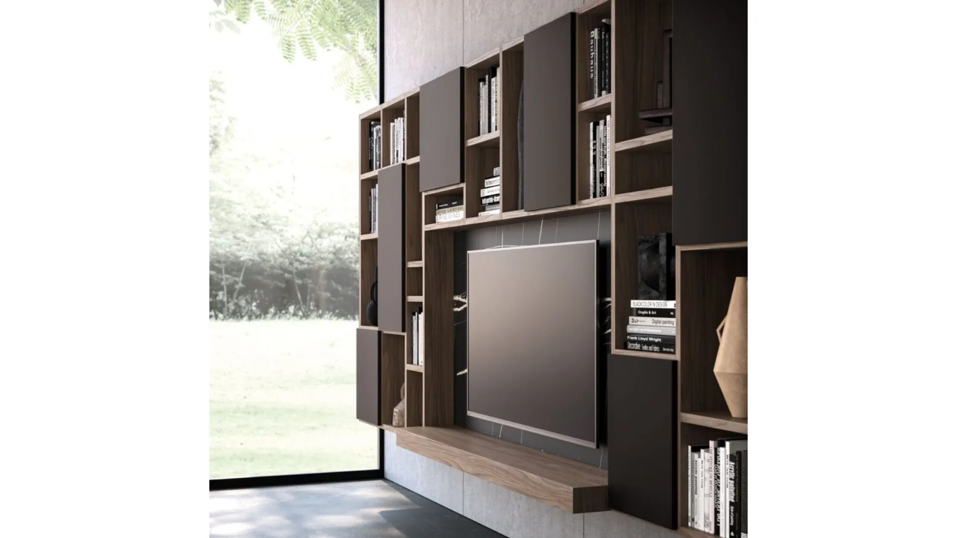 Finiture naturali che si abbinano in un ambiente accogliente e armonioso, la libreria a spalla sospesa gioca con vani pieni e vuoti grazie alle ante personalizzabili in altezza. Massima componibilità, trasversalità di finiture e possibilità compositive per realizzare soluzioni sempre nuove. Libreria a spalla sospesa in matericio Noce con ante in laccato opaco Tufo e schiene in melaminico marmo Tunisi. Consolle in materico Noce. Dimensioni composizione: Larghezza 330cm, Altezza 180cm, Profondità 48cm. Spedizione compresa nel prezzo in tutta Italia 40-50 giorni lavorativi. La composizione in laminato ha un prezzo base di euro 2.400,00. Personalizzando con materiali legno e laccati come in foto l'offerta è di euro 2.500,00. Per maggiori informazioni e preventivi contattaci via mail.