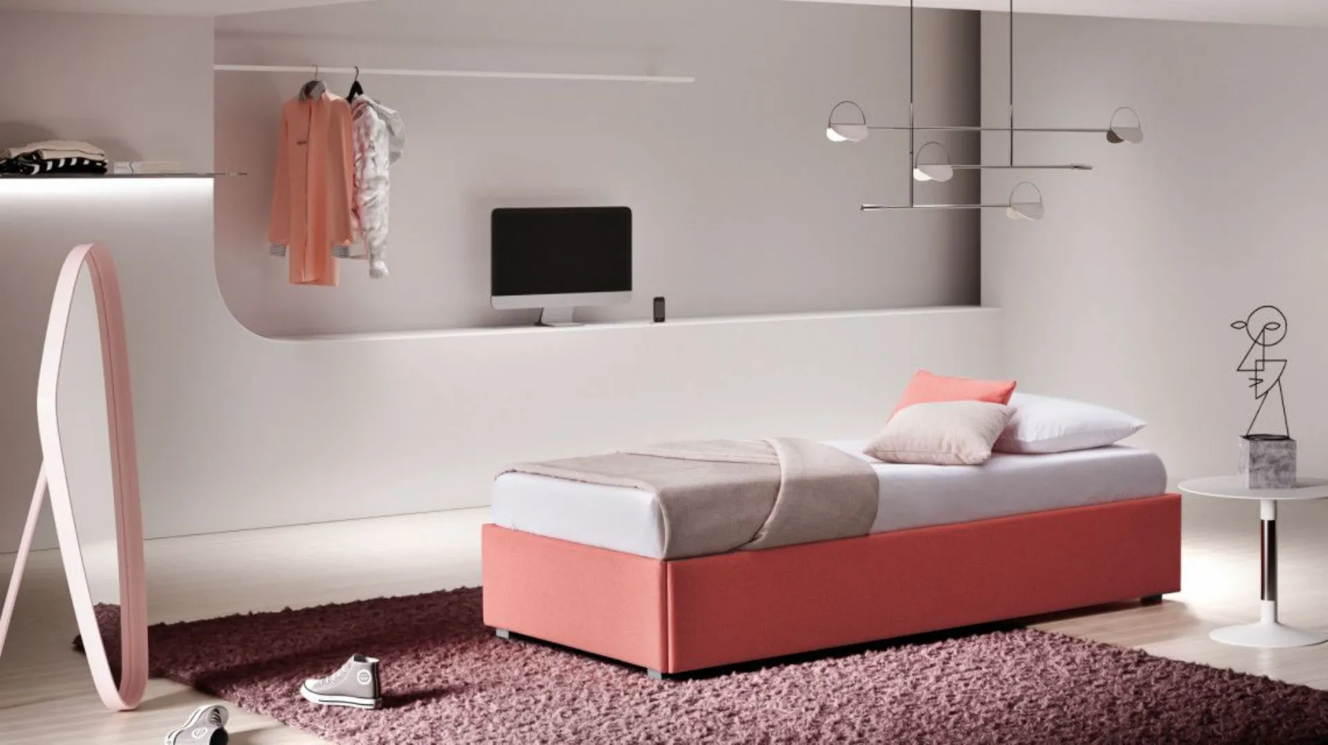 Letto modello Pervinca singolo , compreso di rete a doghe, piedini alti 4 cm da terra, interamente sfoderabile dal design moderno! La cameretta dei bimbi è necessario che preveda tutti gli arredi per garantire un ambiente confortevole, in cui convivono i letti moderni come questo.