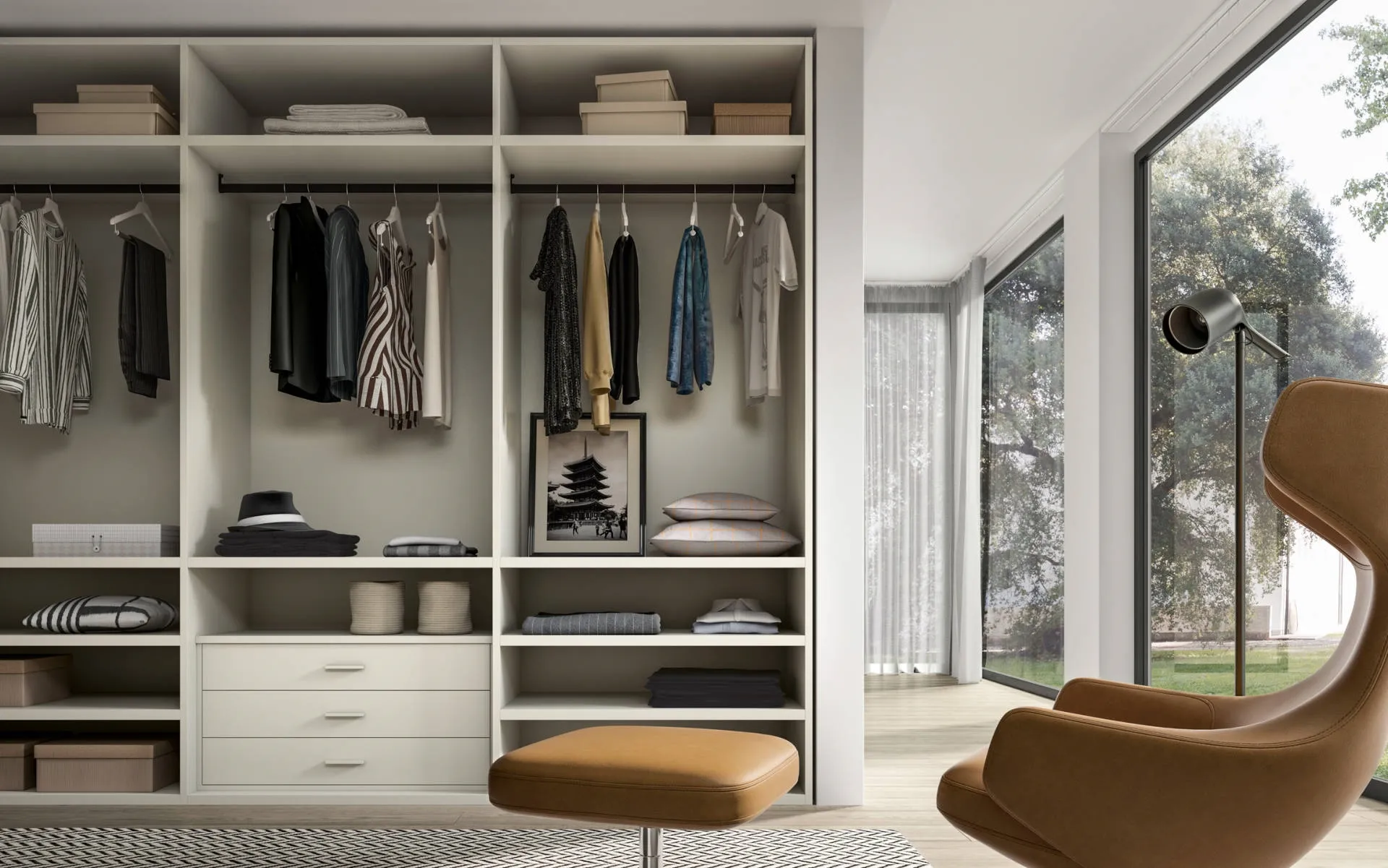 Armadio moderno con tre ante scorrevoli in laccato opaco con banda orizzontale in legno e con maniglioni in titanio, chiusura assistita, ripiani interni, appendi abiti. Di lunghezza 272cm, altezza 242cm e profondità 65cm, l'articolo è disponibile ad euro 2.300,00, possibiltà di aggiunta cassettiera al prezzo di euro 200,00. Con finiture a scelta, la spedizione varia dai 30 ai 35 giorni.