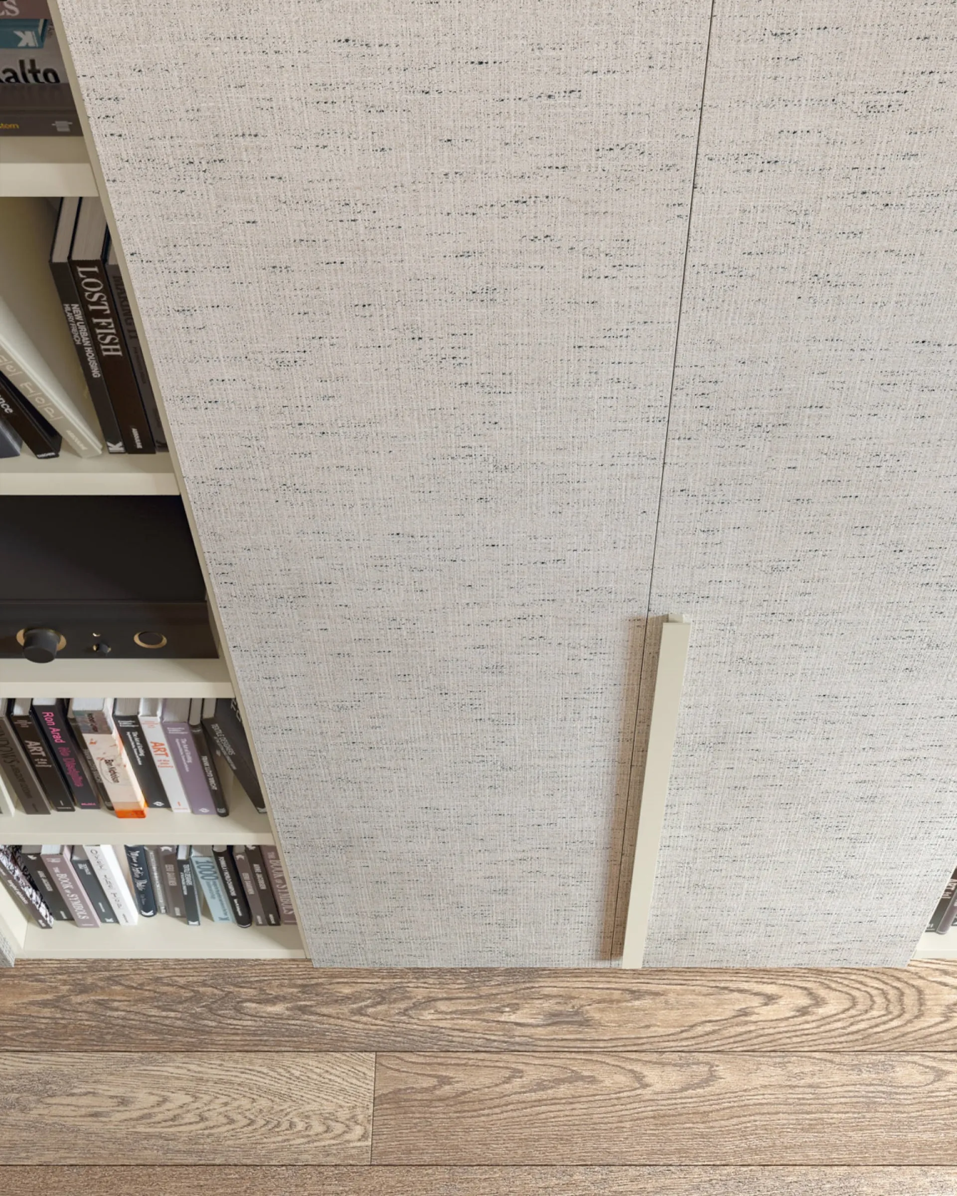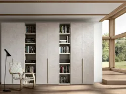 Armadio moderno con sei ante battenti e due librerie, con maniglie di forma allungata. Di lunghezza 362cm, altezza 242cm e profondità 59cm, l'articolo è disponibile a €2.100,00. Con finiture a scelta, la spedizione varia dai 30 ai 35 giorni.