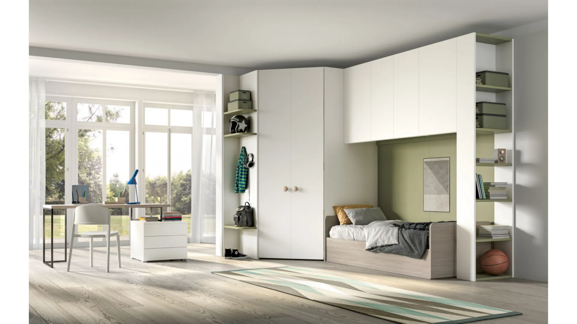 Se hai due bambini che devono condividere la stessa stanza da letto, la cameretta con ponte è sicuramente la soluzione perfetta. È estremamente versatile perché i suoi elementi sono componibili in diverse forme e si adattano all'ambiente circostante, ed è caratterizzata da una grande praticità. Le camerette con ponte, infatti, sono dotate di armadi molto ampi che saranno in grado di contenere tutti i vestiti e i giocattoli dei tuoi bambini, permettendoti di mantenere sempre in ordine la loro stanza. L’armadio sopra il letto, una classica soluzione per arredare sfruttando lo spazio e recuperando capienza anche nelle camerette più piccole. I ponti sono originali e si adattano a qualsiasi esigenza, dall’armadio lineare al ponte ad angolo, dagli armadi a ponte integrati con letti a castello ai letti doppi estraibili e molto altro ancora. Camerette prodotte interamente in Italia con materiali certificati e garantiti che rispettano i più rigorosi standard: qualità e sicurezza per la salute dei vostri bambini. Inoltre potrai scegliere tra un'infinita varietà di colori e di composizioni, affidandoti ad un personale esperto e qualificato che sarà in grado di guidarti nelle scelte e di indicarti le soluzioni migliori per i tuoi bambini.