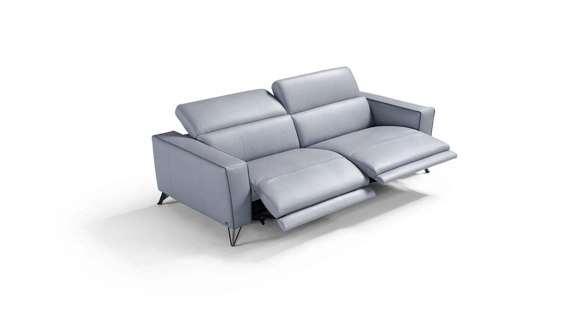 Divano a tre posti e due sedute con due relax, disponibile in pelle o in tessuto cashmere personalizzabili, di lunghezza 234cm. I tempi per la fornitura vanno dai 60 ai 70 giorni.