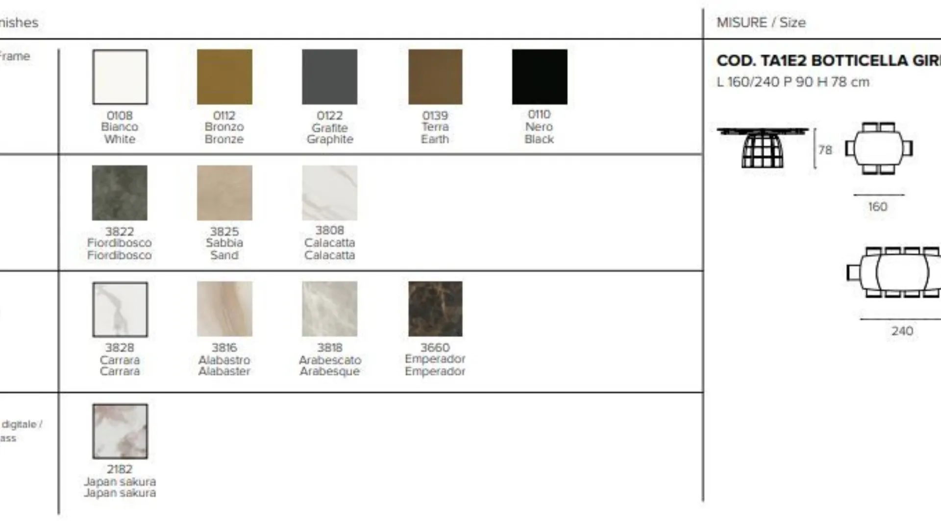 Target Point offre mobili di design, chic e moderni per il massimo dell'eleganza e praticità. Tavolo allungabile modello Cosmos con basamento in metallo Grafite 0122 e piano girevole a botticella in gres porcellanato effetto marmo Fiordibosco 3822.. Larghezza 160/240cm, Profondità 90cm, Altezza 78cm. Articolo su ordinazione tempi per la fornitura 20-30 giorni con finiture dei materiali senza variazione del prezzo. Consegna compresa in tutto il territorio nazionale. La nostra offerta è di euro 2660,00. Per maggiori informazioni e preventivi contattaci via mail.