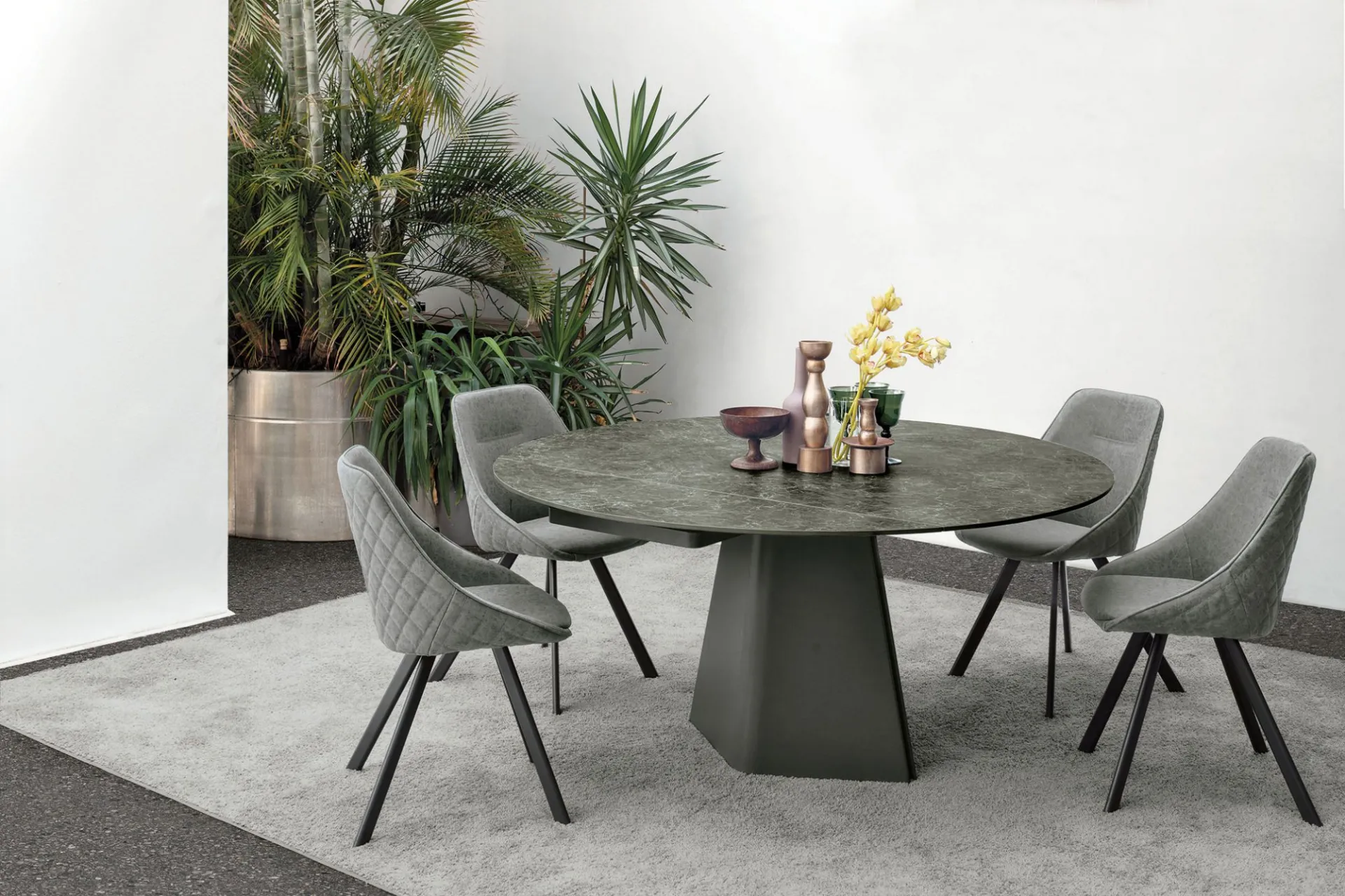 Target Point offre mobili di design, chic e moderni per il massimo dell'eleganza e praticità. Tavolo Tay allungabile con basamento centrale in metallo verniciato. Piano girevole semiautomatico a botticella che si trasforma in rotondo in gres porcellanato Larghezza 90/35x35cm, Profondità 135cm, Altezza 75cm. Articolo su ordinazione tempi per la fornitura 20-30 giorni con finiture dei materiali senza variazione del prezzo. Consegna compresa in tutto il territorio nazionale. La nostra offerta è di euro 2350,00 come modello foto. Per maggiori informazioni e preventivi contattaci via mail.