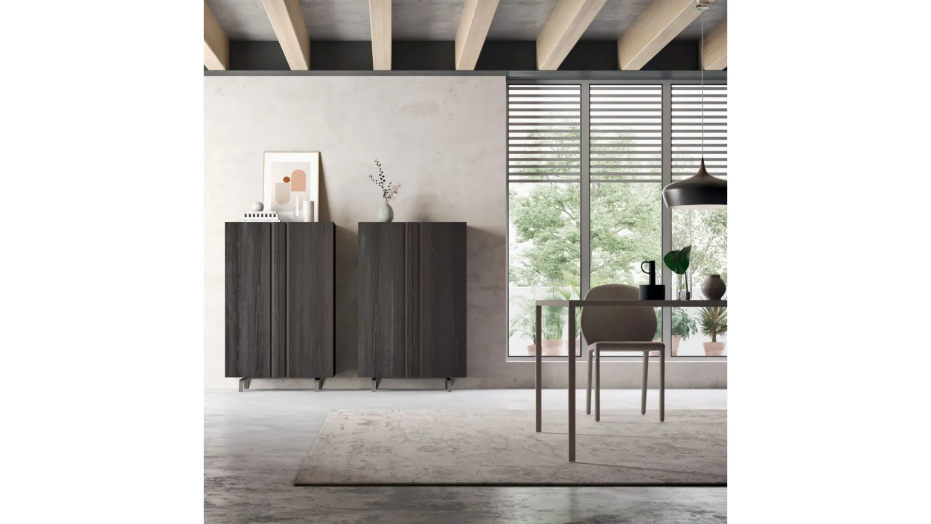 Una madia che si distingue per il forte carattere dell’anta, segnata da un inserto che funge da maniglia. Con la palette laccato opaco in contrasto con la facciata, crea una linea di colore che personalizza la tua casa. VIRGO 02 è un articolo su ordinazione, cona la possibilità di scelta personalizzare le finiture, la struttura frassino Carbone, anta Virgo frassino Carbone con maniglia laccato opaco Tufo. Basamento Tiglio finitura Brunito. L 1200 x H 1408 x P 420 mm.
